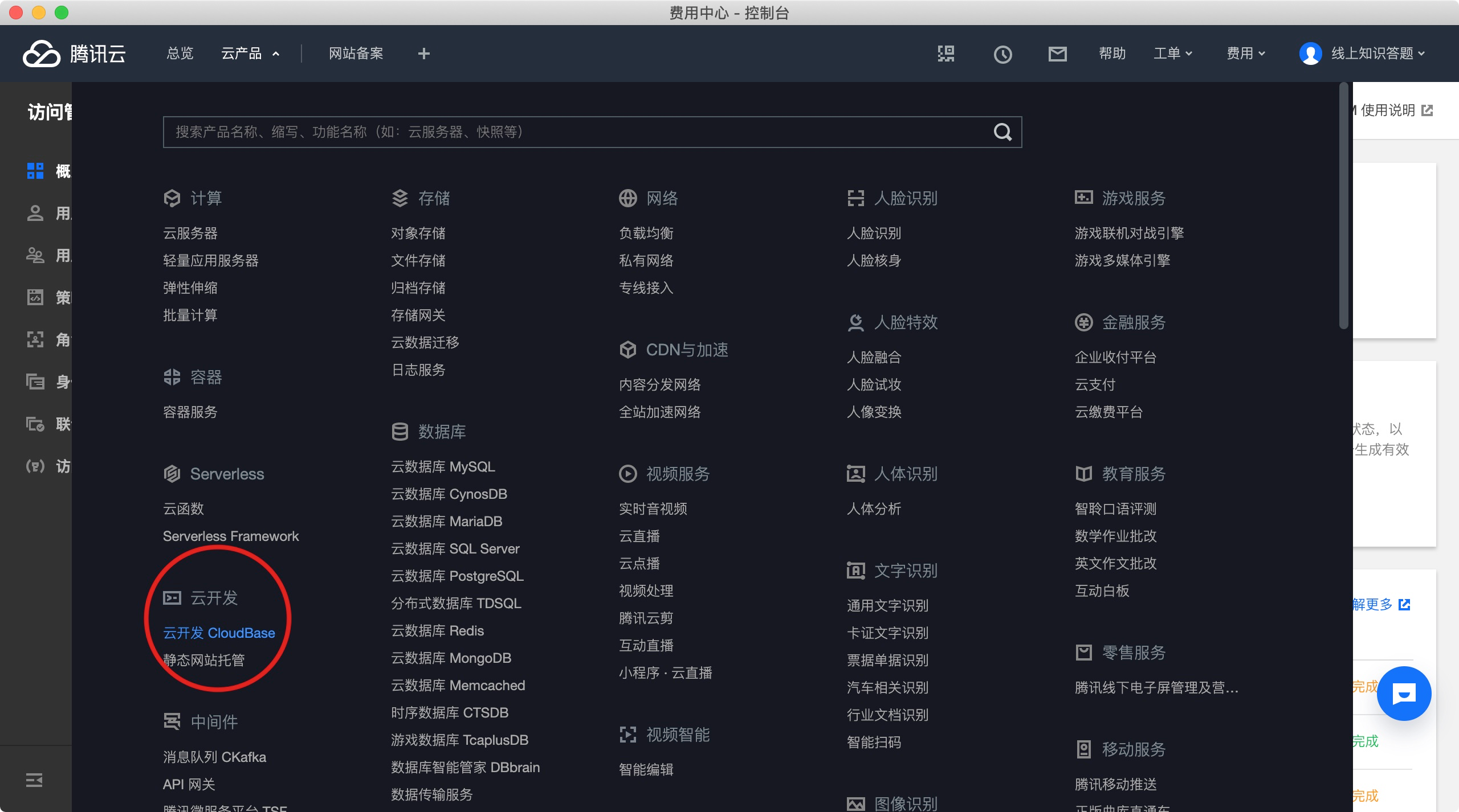 第一步:打开云开发控制台