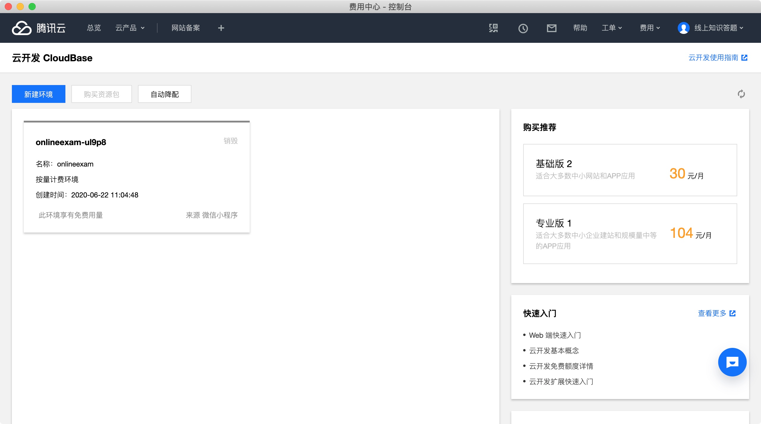 第一步通过云开发控制台开通按量付费服务,