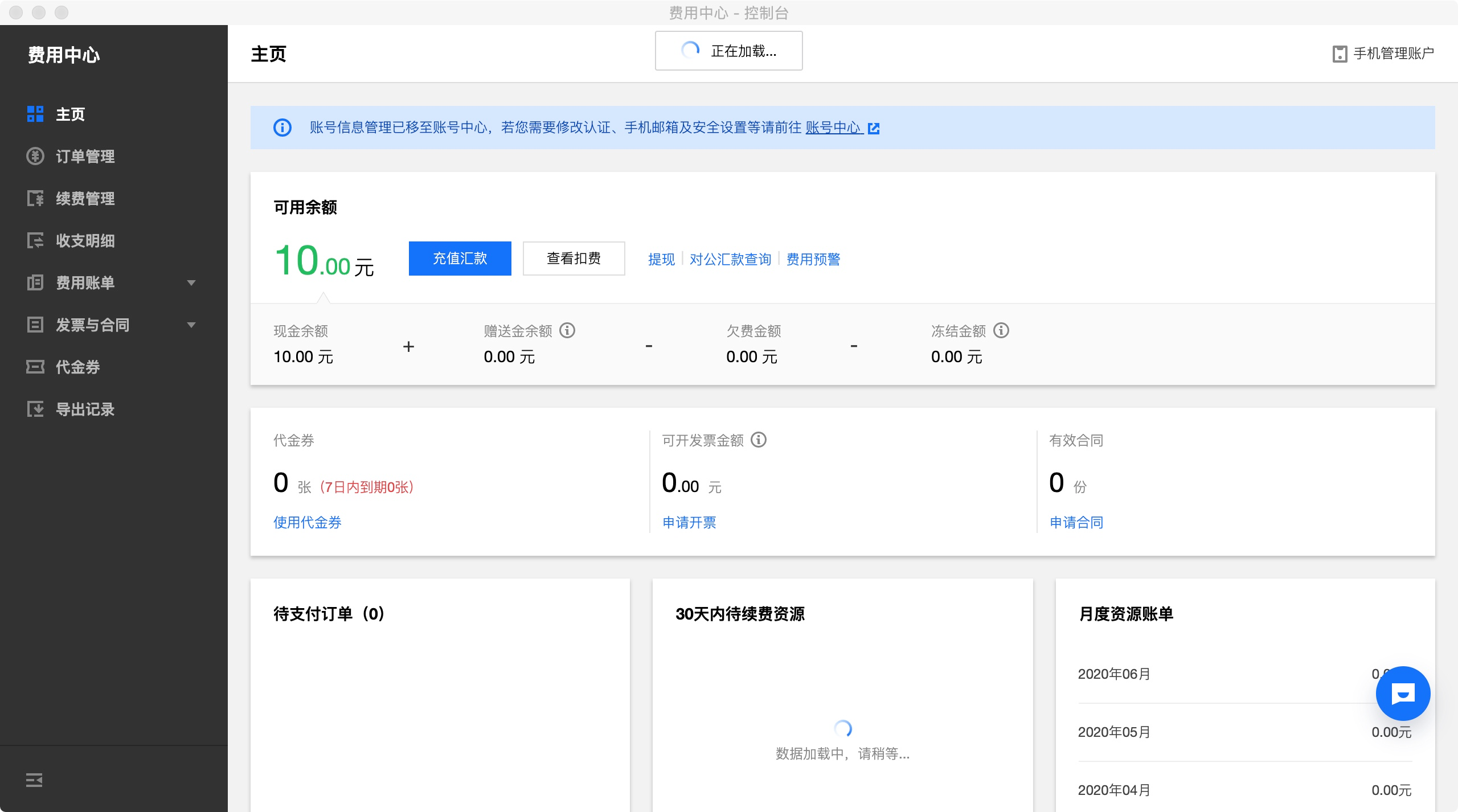 第三步:点击上图的腾讯云付费中心