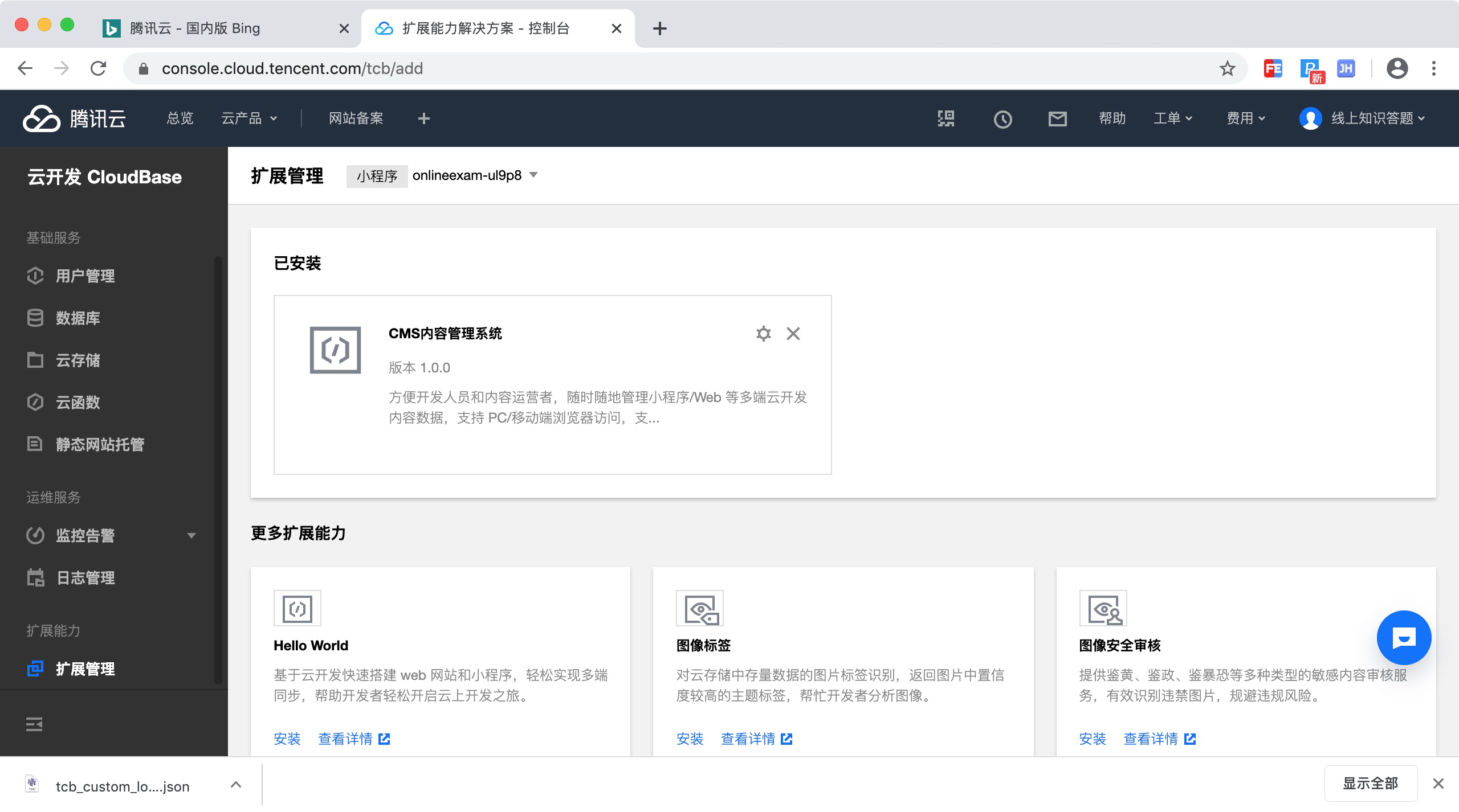 第二步:到腾讯云web端,安装CMS内容管理系统插件
