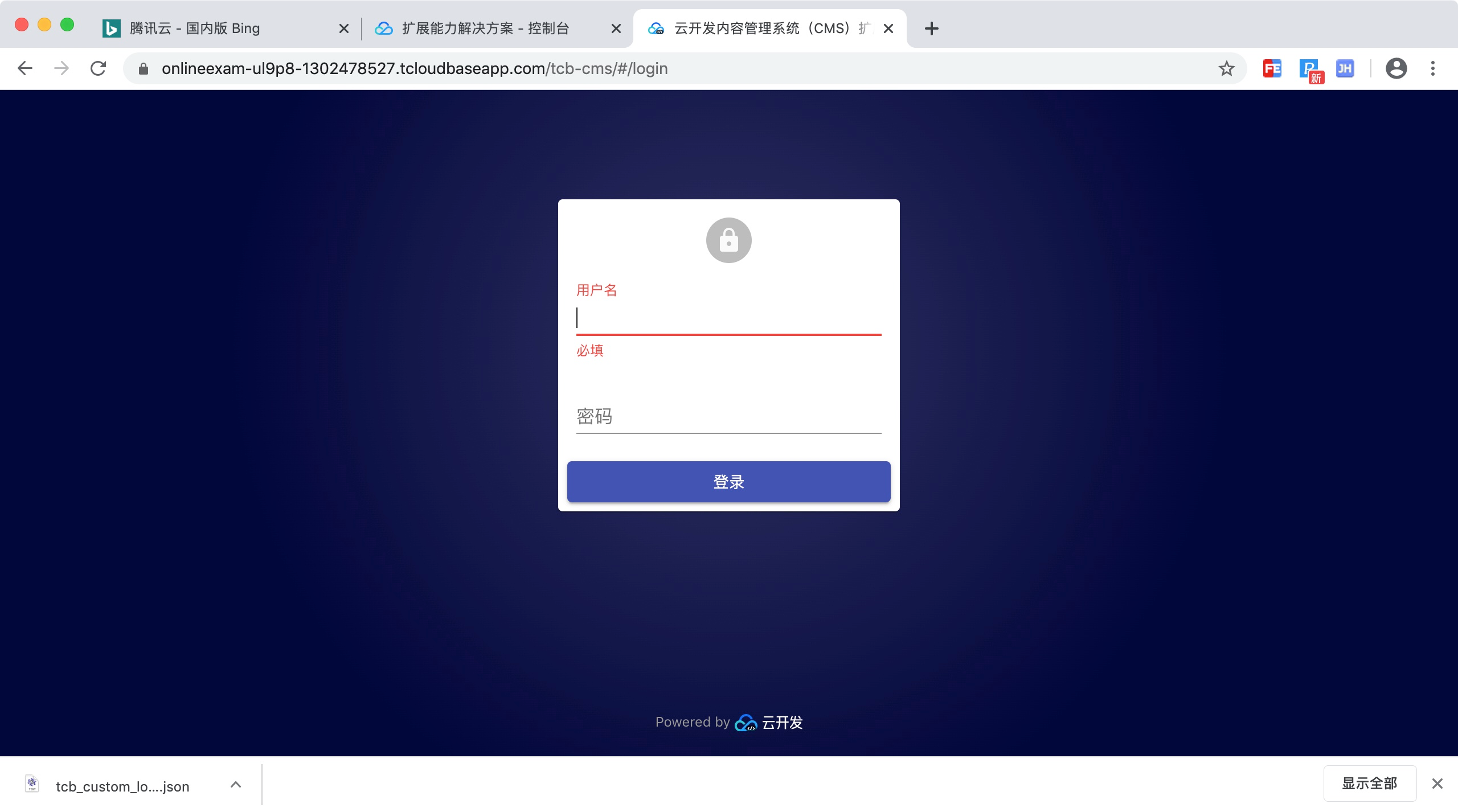为什么他那个云开发的内容管理开通不了,写完用户名和密码开通后没有响应