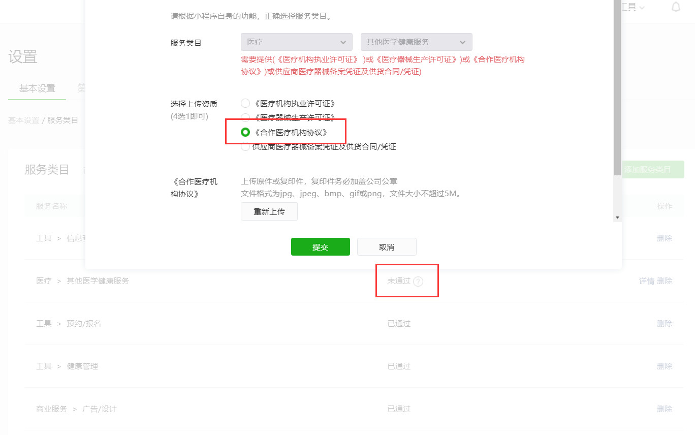 我们已经按要求提交了3次不同的医疗机构相关合作协议,包括医院的服务授权函、完整的合作协议等等,还是不给通过,也不说清楚到底什么原因