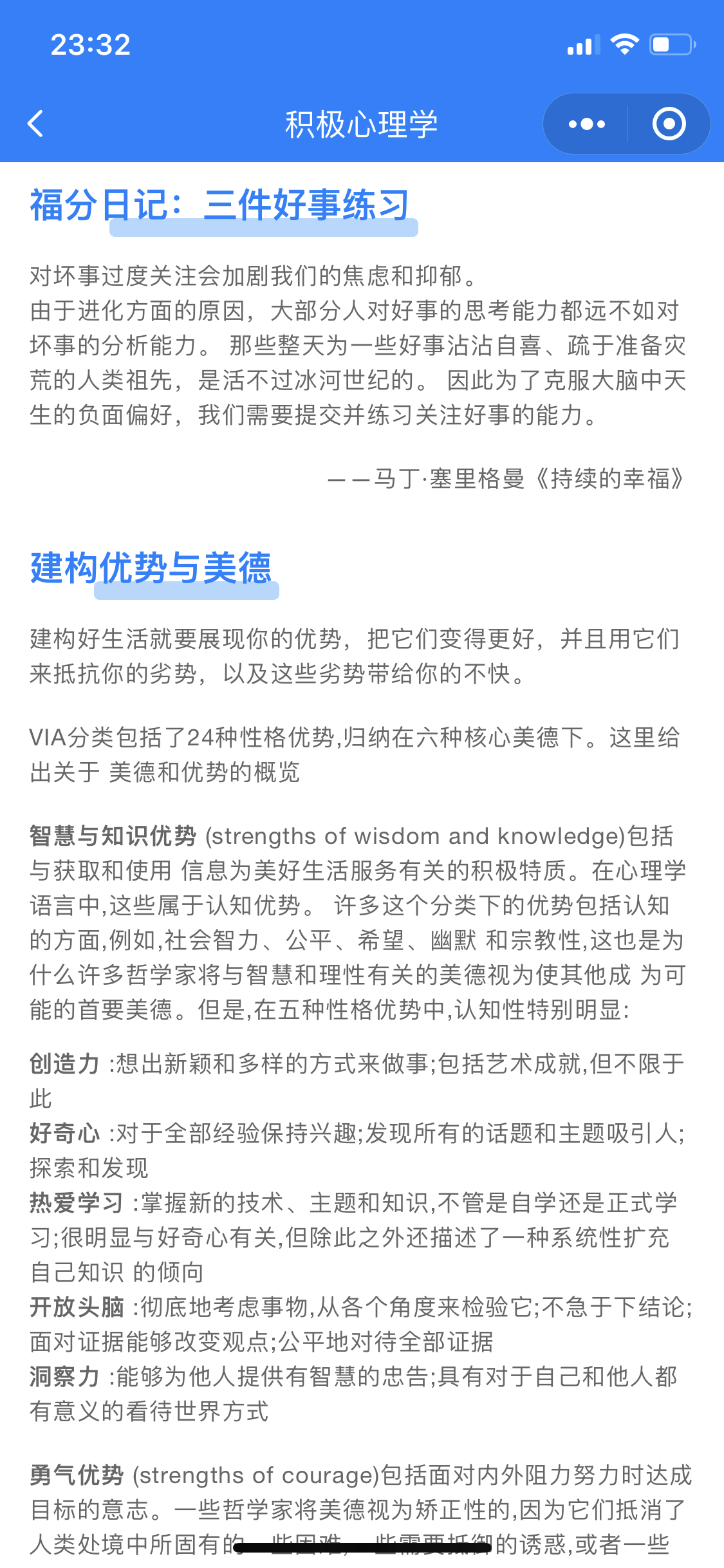 当情况没有严重到影响正常生活时,我们会通过坚持锻炼保持身体健康,通过学习心理学知识+觉察+心理学知识应用保持心理健康——最终达到人生幸福美满。