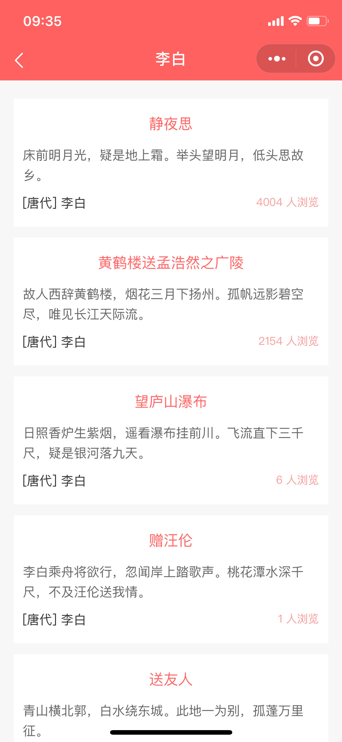 "abstract": "李白(701年-762年),字太白,号青莲居士,唐朝浪漫主义诗人,被后人誉为“诗仙”..."