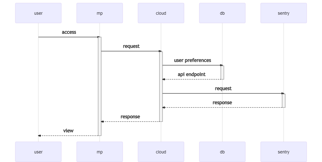 通过调用 sentry 提供的 API 完成 sentry 小程序的客户端。以切换 host 和 access token 的形式支持第三方部署的 sentry 服务。通过 serverless 做后端请求转发和基本的配置信息保存更新