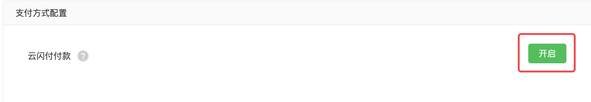 登录微信支付商户后台->「产品中心」->「开发配置」页面最底部找到「支付方式配置」,点击「开启」就可以了,无需开发,无需额外配置,只要用户手机安装了云闪付app,在小程序支付时,就可以选择云闪付付款。
