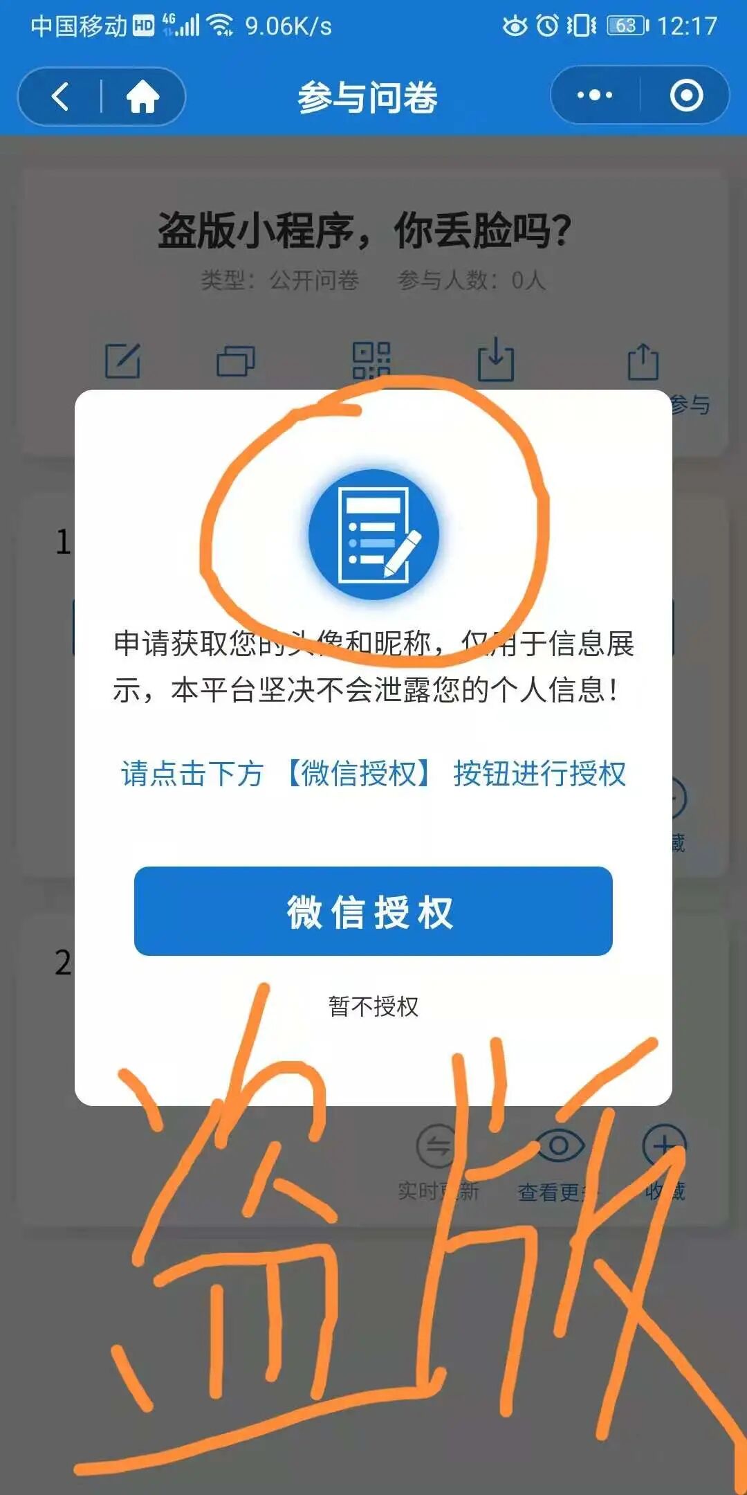 先看盗版小程序截图:(这个憨憨连我logo都忘记换了)