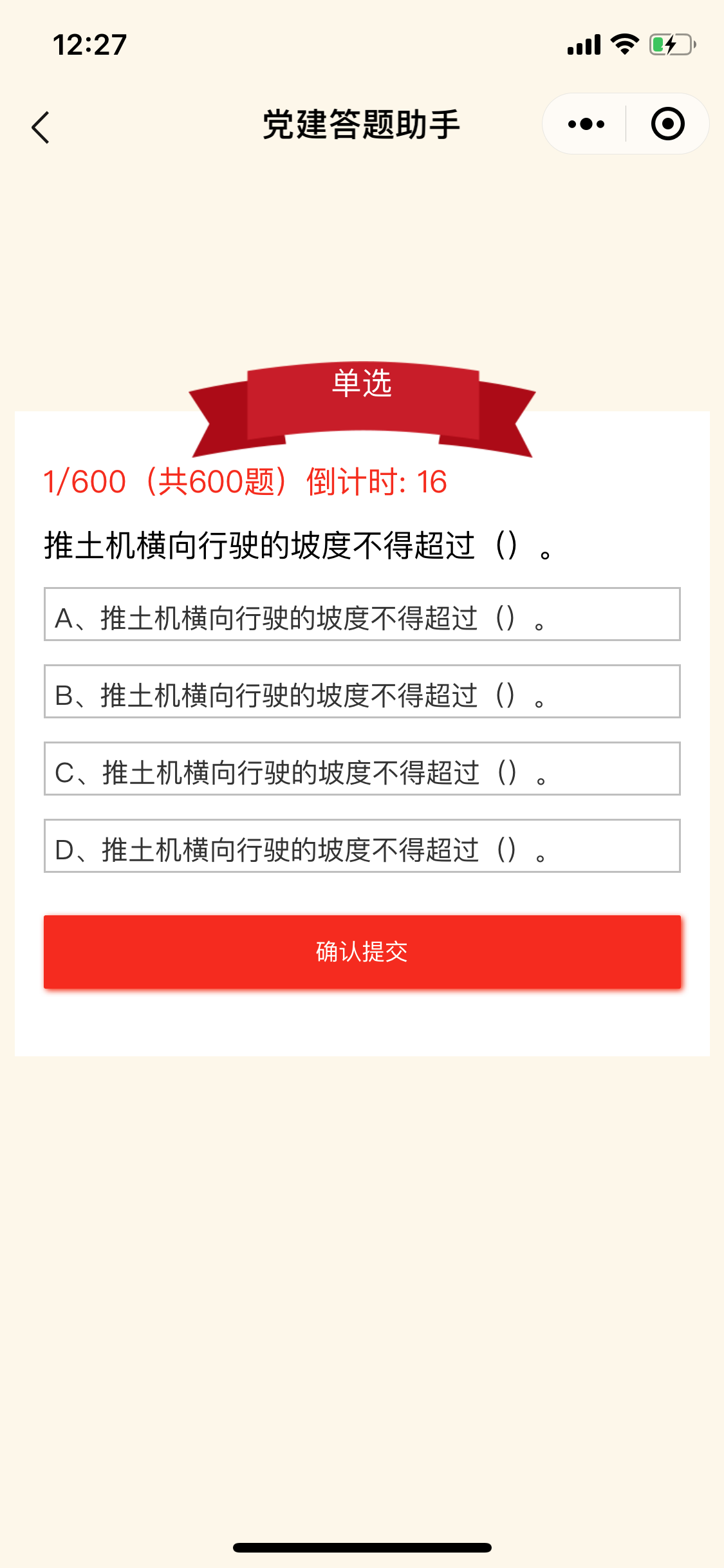 (2)复活之后,当前题已选选项清空,状态清空,从该题开始继续作答