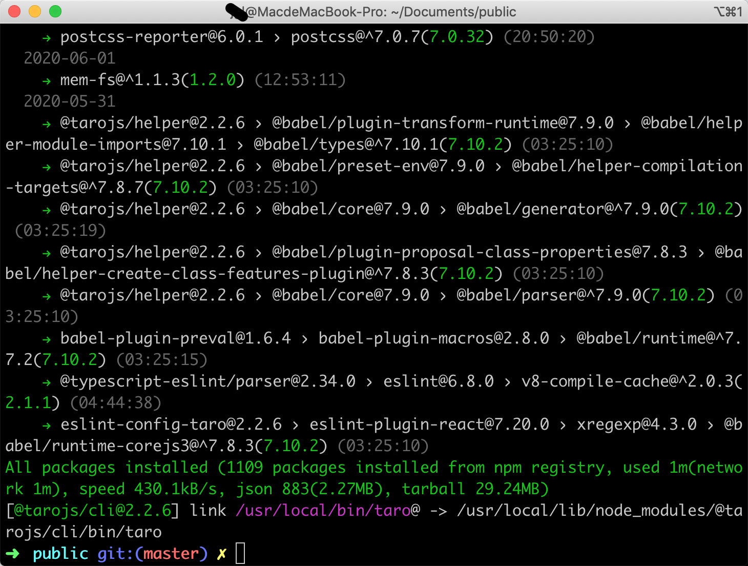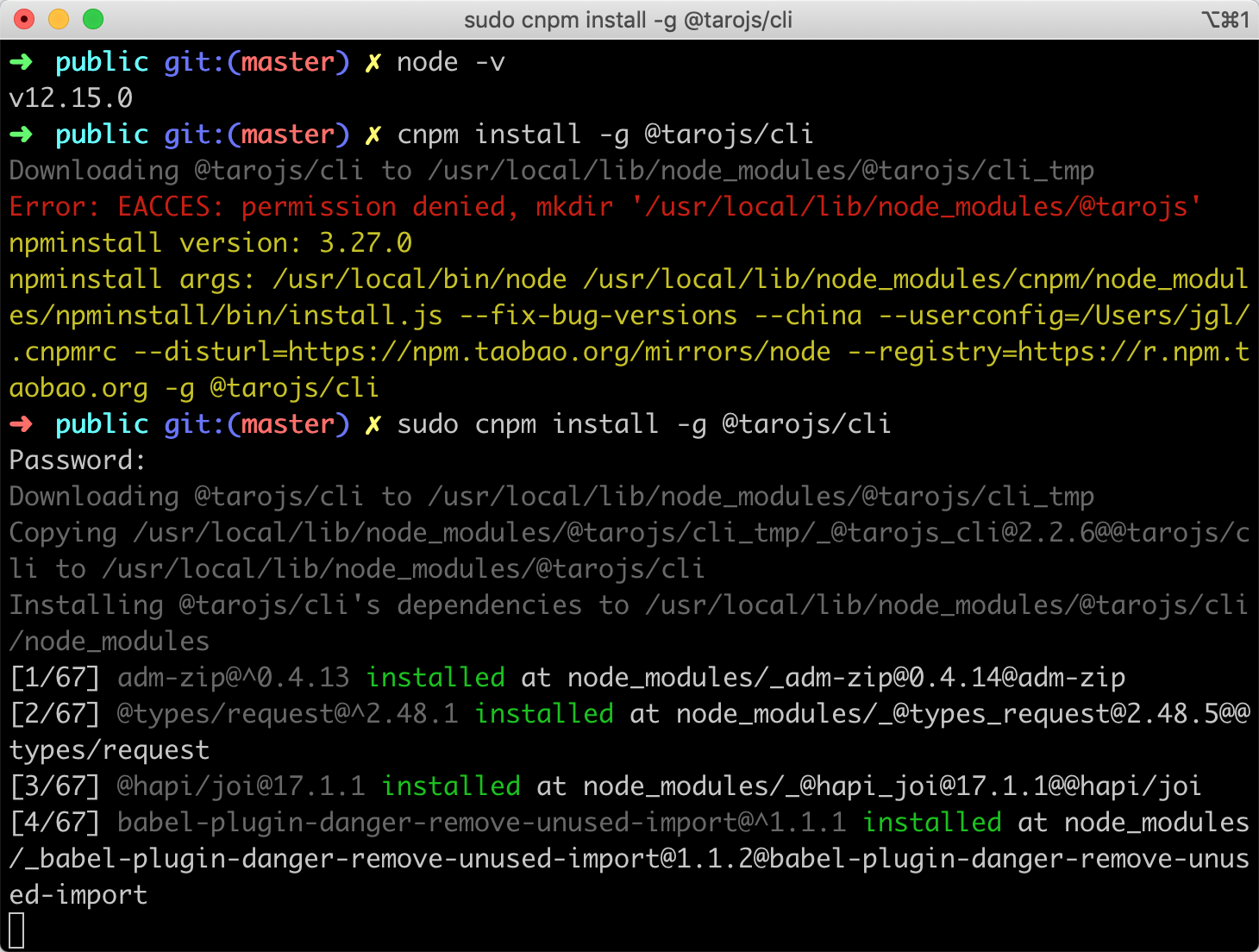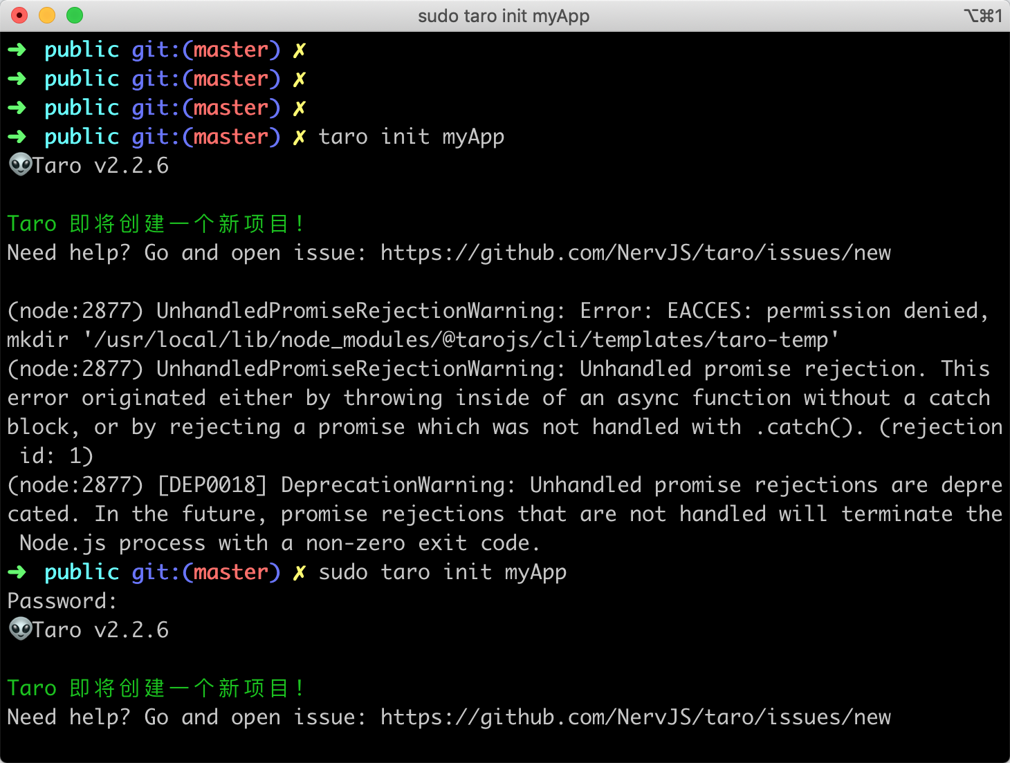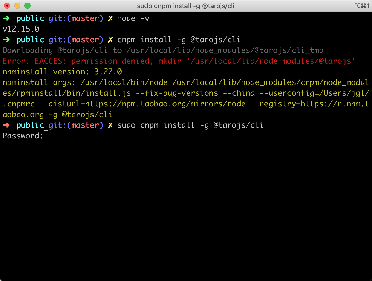 sudo cnpm install -g @tarojs/cli