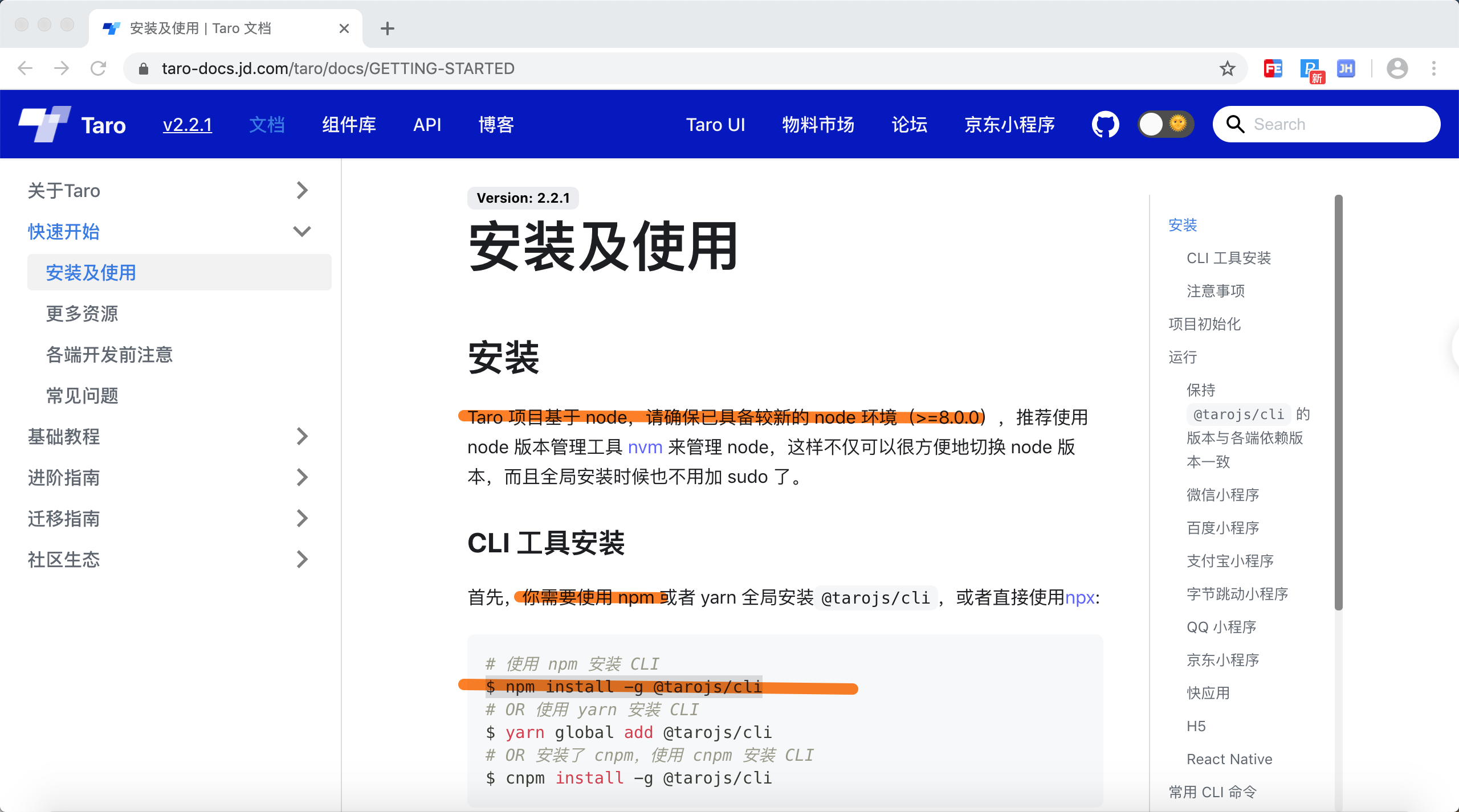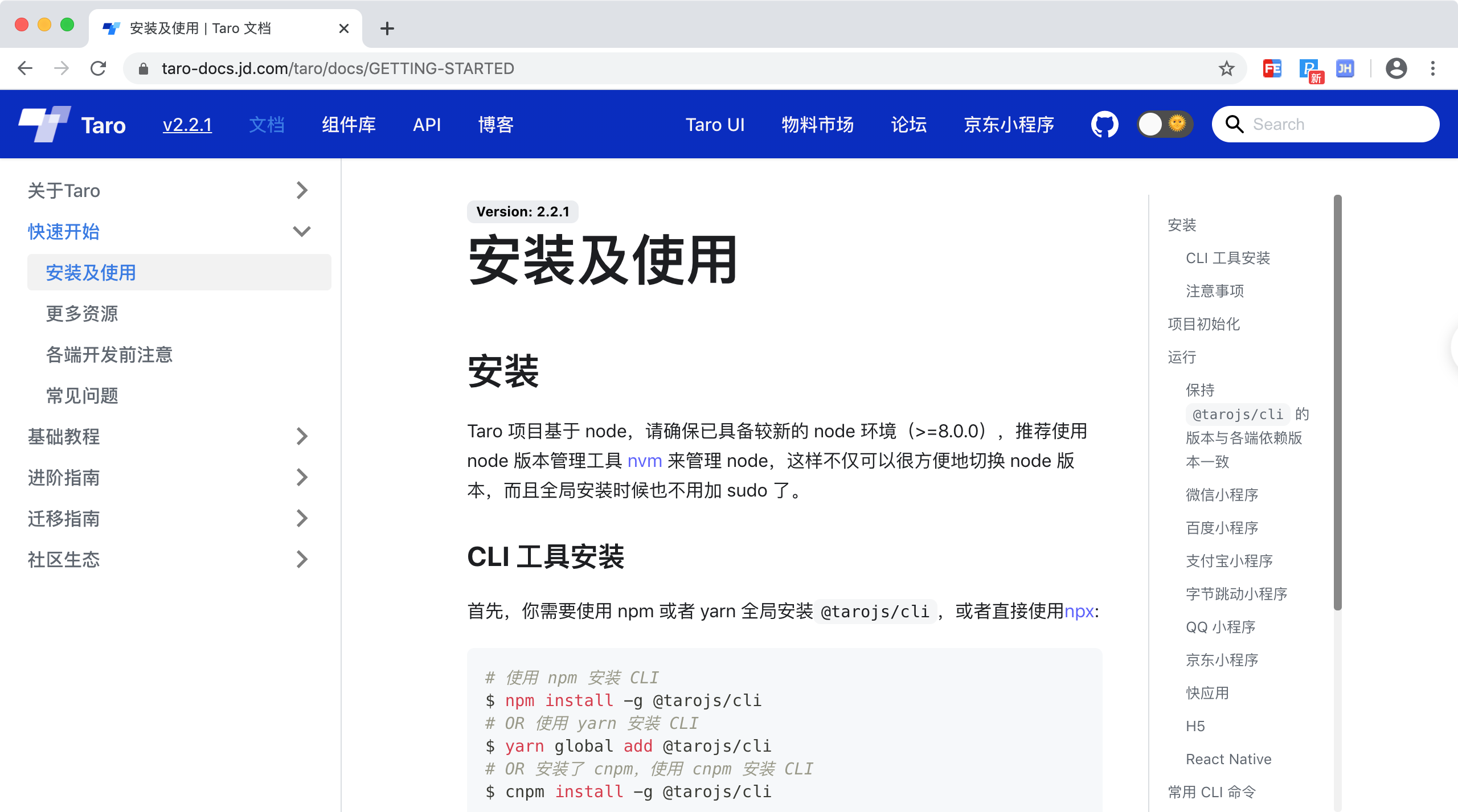安装taro官方文档如下: