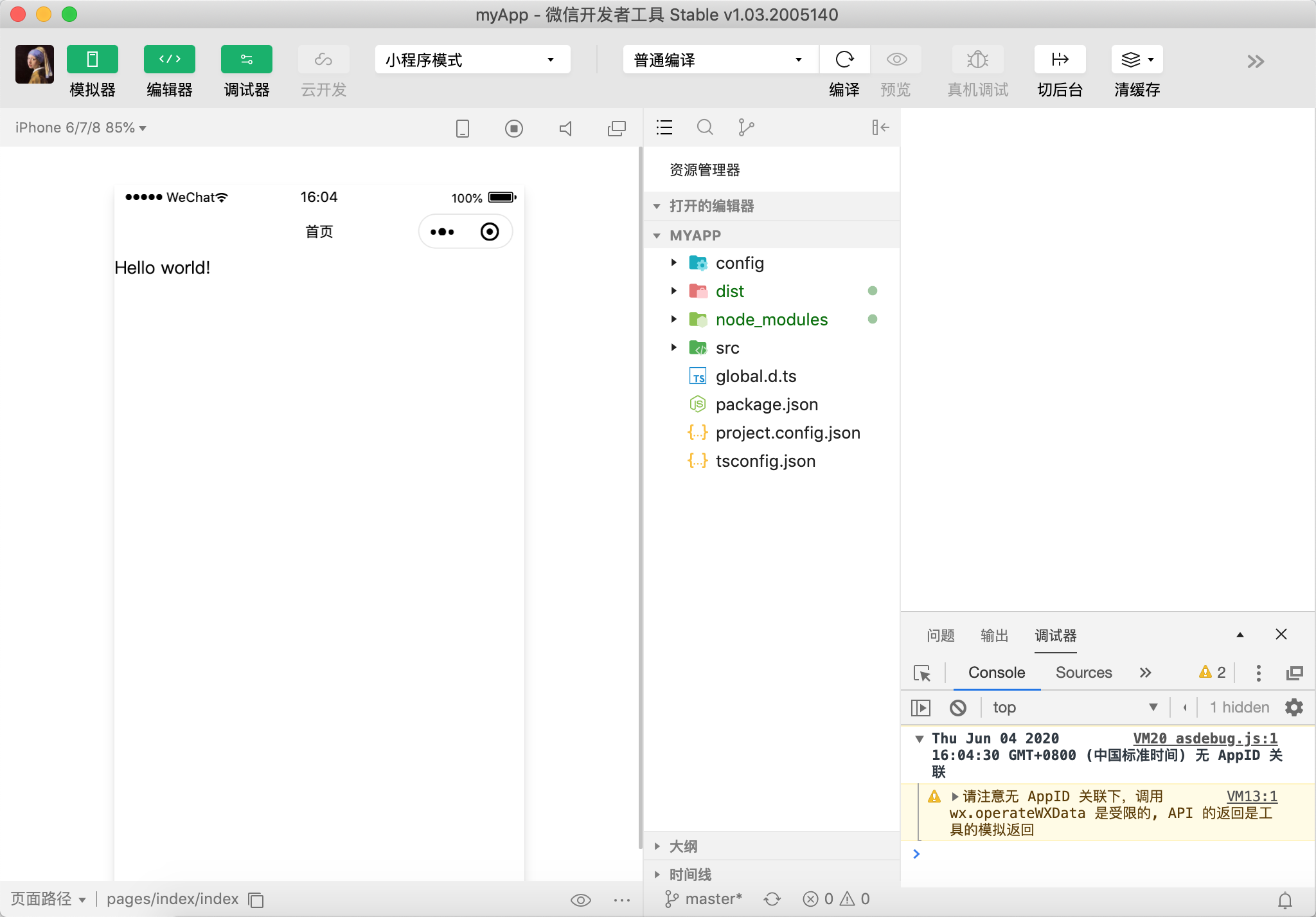 一个基于Taro的hello world小程序已搭建完成。