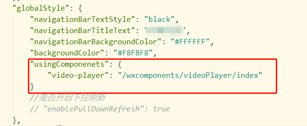 2)在pages.json里添加usingComponenets,因要在vue组件里使用微信小程序自定义组件,在globalStyle下引用组件,如下图: