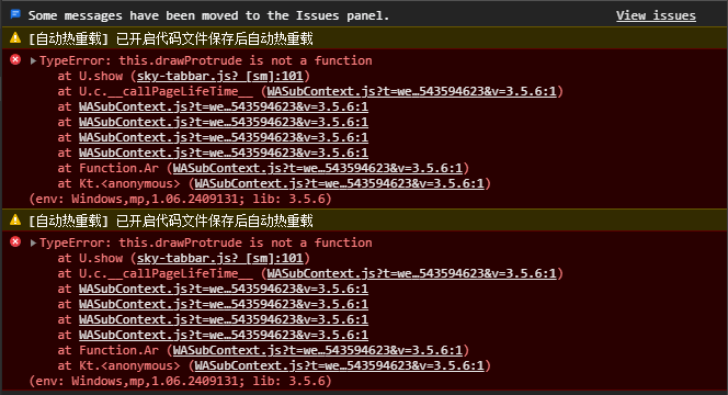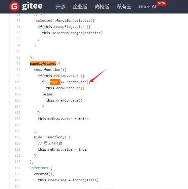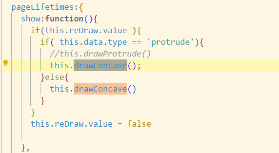 if( this.data.type == 'protrude'){ this.conWidth.value = res.width this.conHeight.value = res.height + 24 this.otherHeight.value = 0 this.otherWidth.value = 0 this.drawConcave() }else if(this.data.type == 'concave'){ this.conWidth.value = res.width this.conHeight.value = res.height this.otherHeight.value = res.height this.otherWidth.value = res.width this.drawConcave() }仅仅实在这儿调用了this.drawProtrude(),于是我注释了他并不存在的方法,并换上了this.drawConcave()