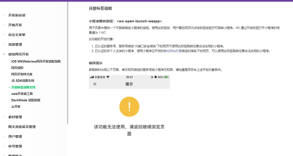 最后给你们福利: 微信版本要求为:7.0.12及以上。 系统版本要求为:iOS 10.3及以上、Android 5.0及以上。 才会支持<wx-open-launch-weapp>