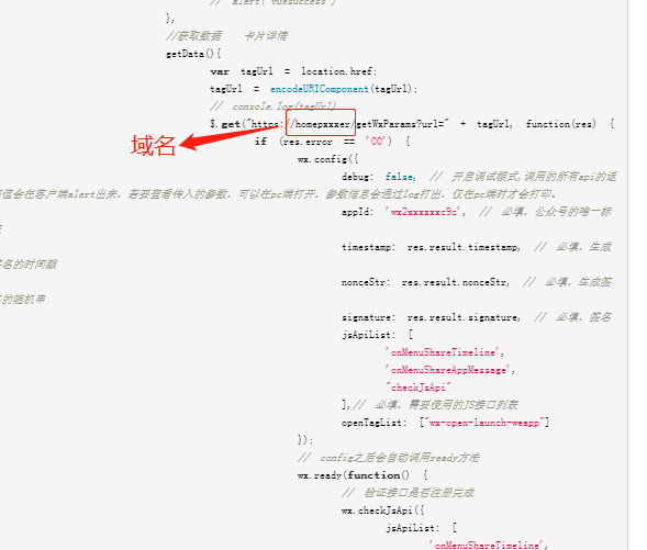 $.get("https://homepxxxer/getWxParams?url=" + tagUrl, function(res) {