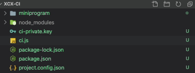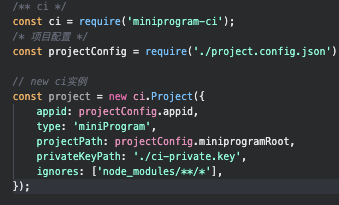 增加ci.js文件,这个相当于是我们的入口代码,引用node包minprogram-ci,并进行appid,项目路径,私钥的配置,官方文档里写的很清楚,我这里快速过