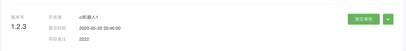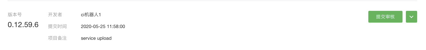 回到微信公众后台,多了一个ci机器人1的提交,成功~~~(这里吐槽下这个开发者名字有点丑,而且不能改,只能改序号,如ci机器人2。。)