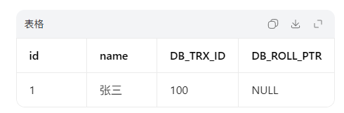 此时版本链:最新版本(李四,trx_id=200) → 历史版本1(张三,trx_id=100) → NULL
