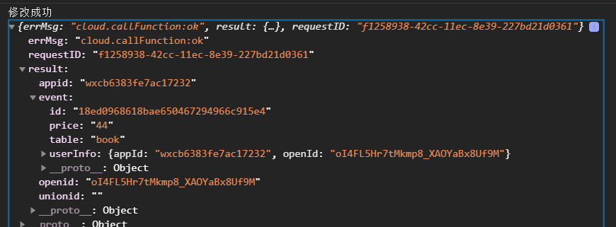 接着,云函数调用数据库操作方法,返回结果