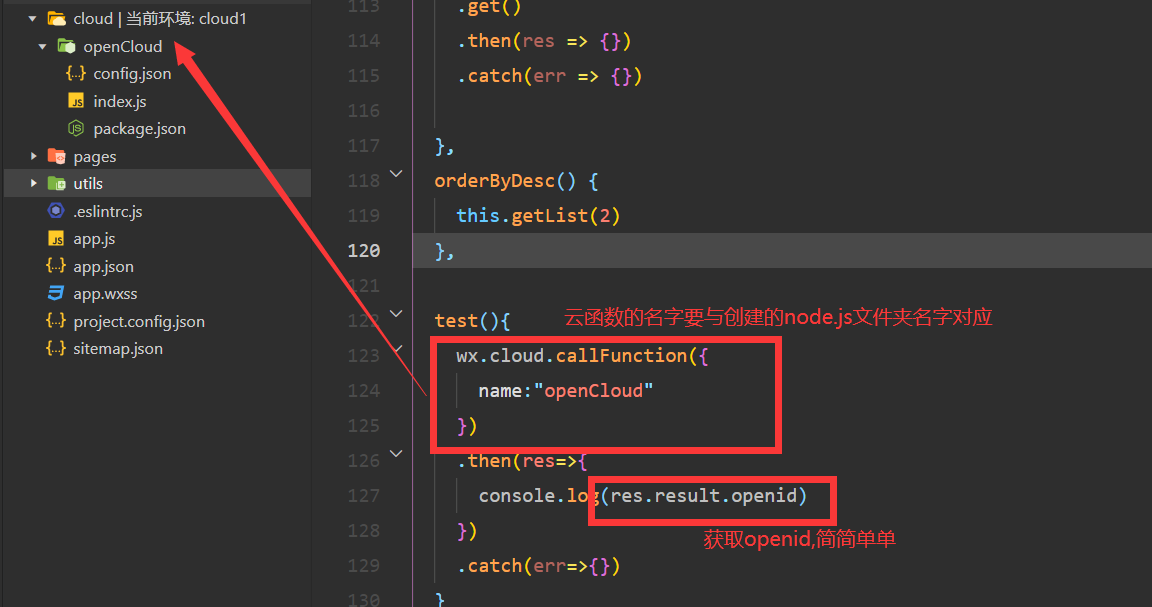 然后需要在cloud文件右击选择创建Node.js云函数,之后我们就可以在js中调用云函数,先获取一下openid: