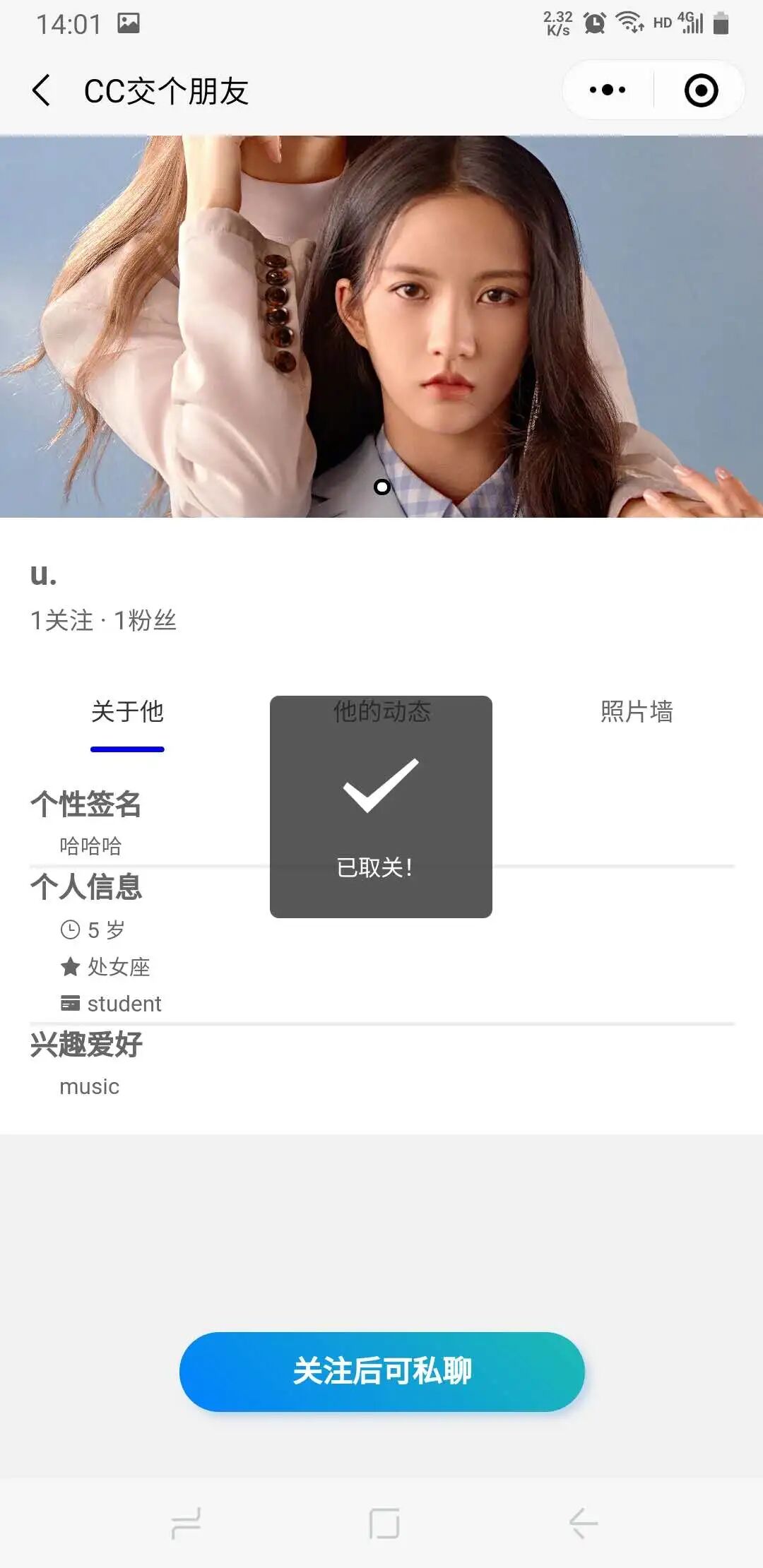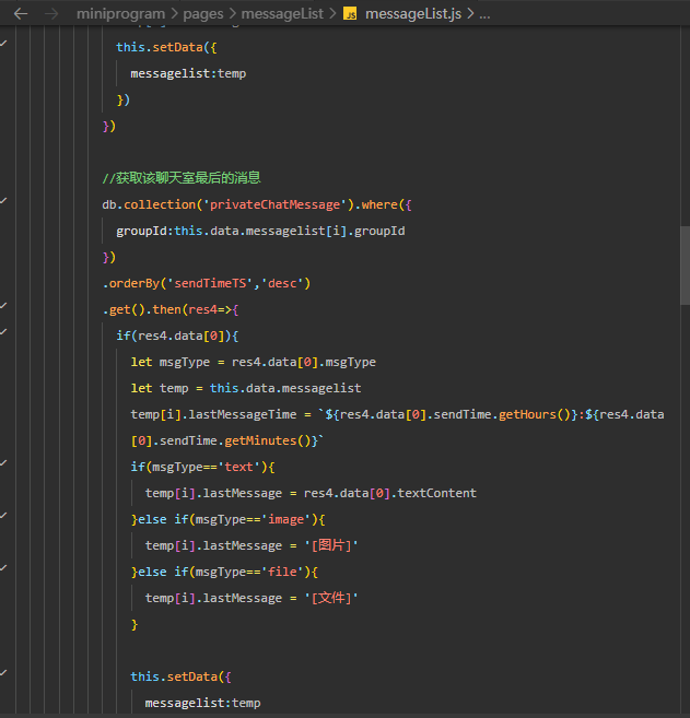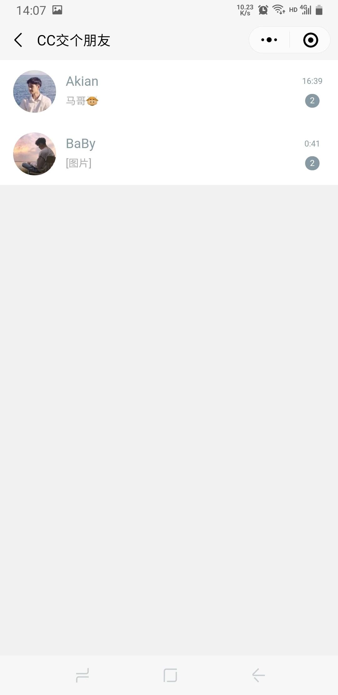 关注网友后可以进行了聊天:调用云函数获取聊天组id,跳转到聊天页面(要求传入聊天组的id)