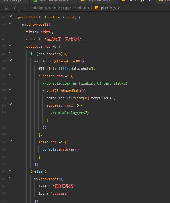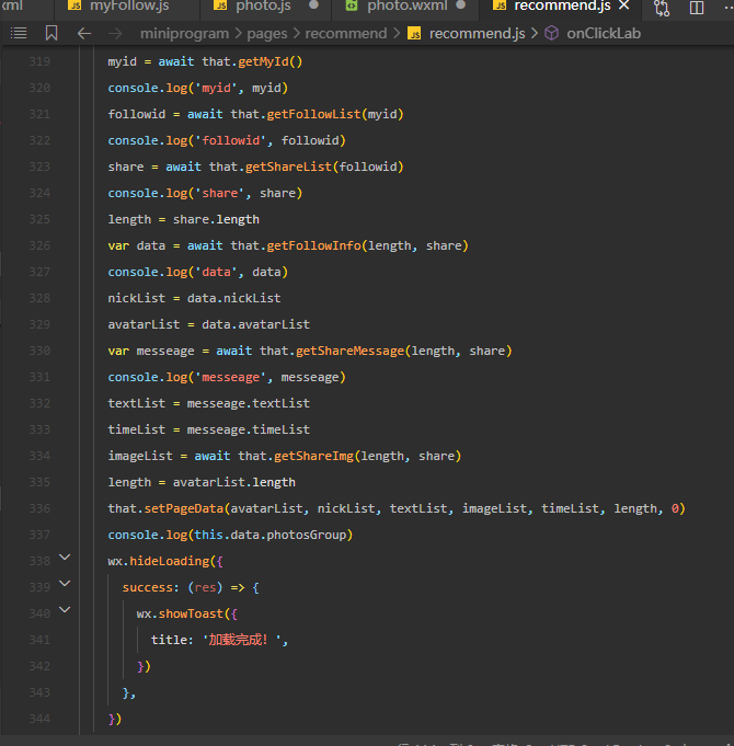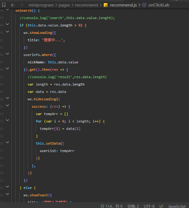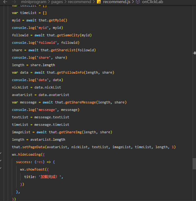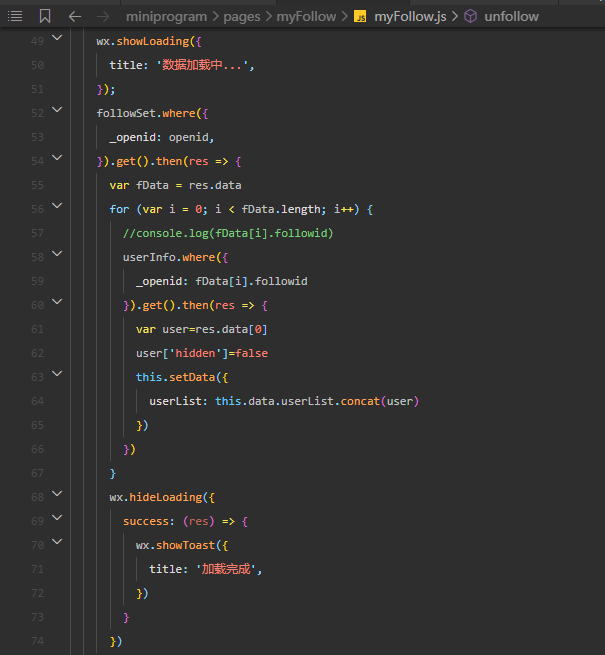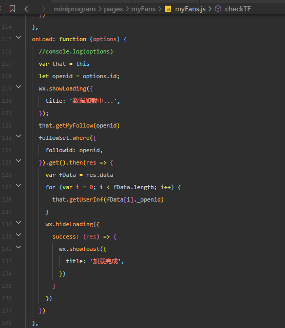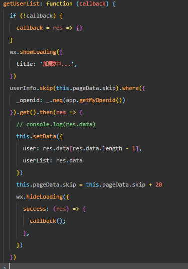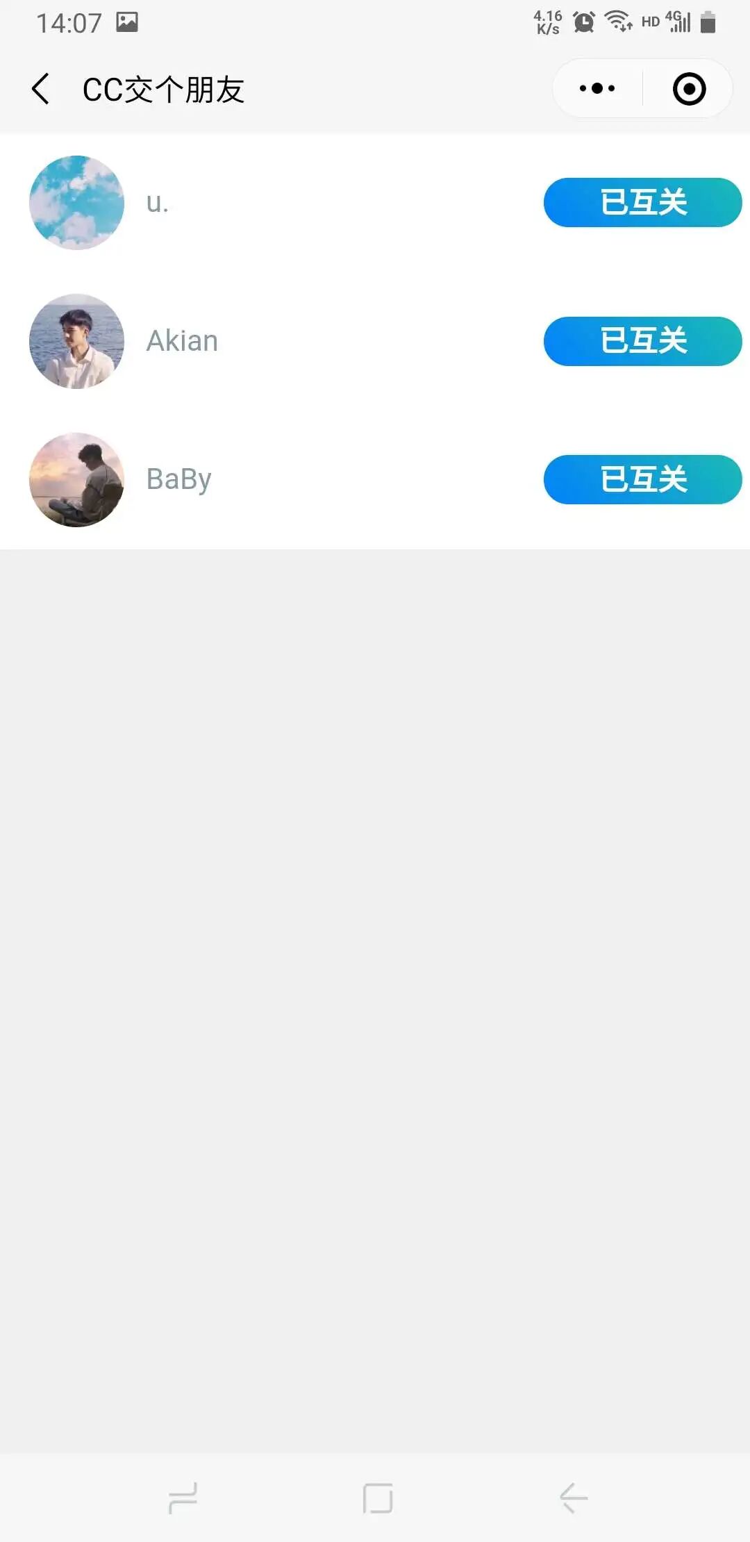 关注网友后可以进行了聊天:调用云函数获取聊天组id,跳转到聊天页面(要求传入聊天组的id)