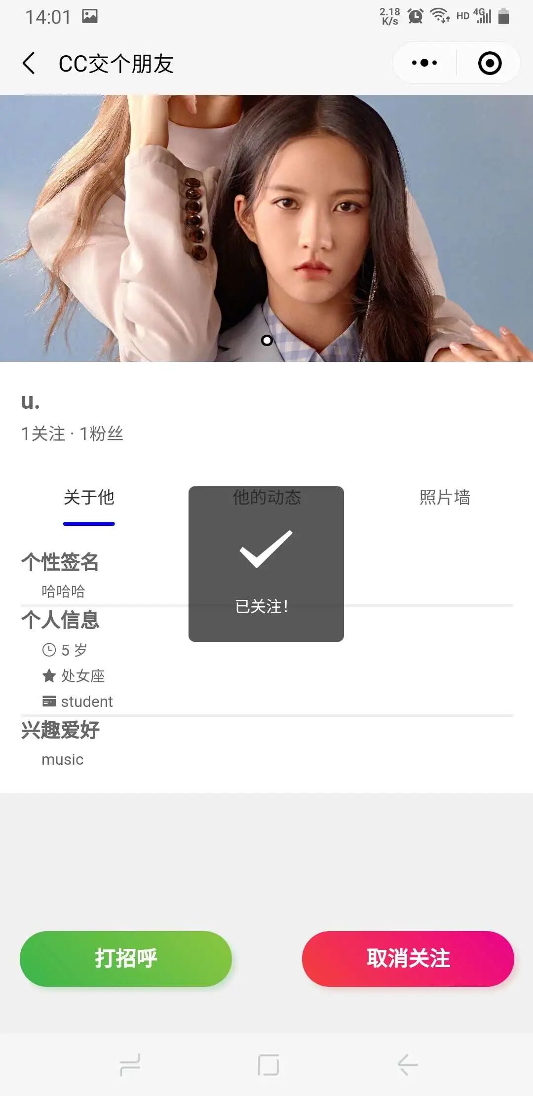 新用户点击上传或点击关注时会要求拉取用户信息并写入数据库