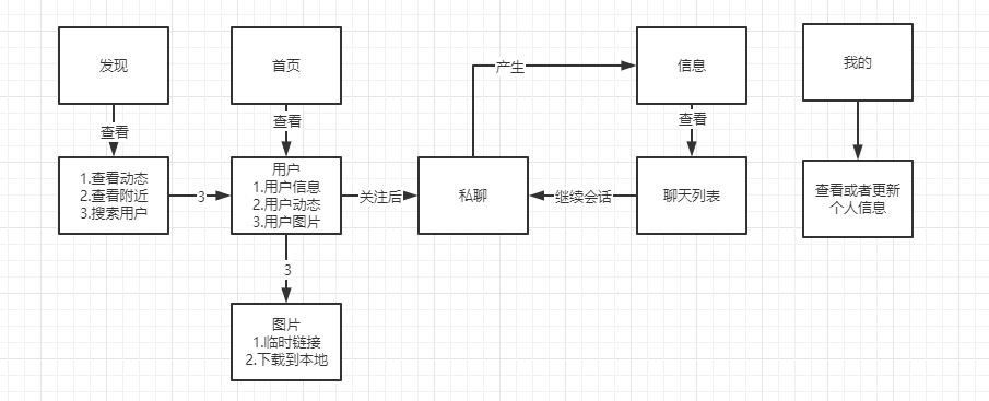 附近:查询我的城市,在用户表中搜索相同的城市的网友openid,再查询该用户的动态