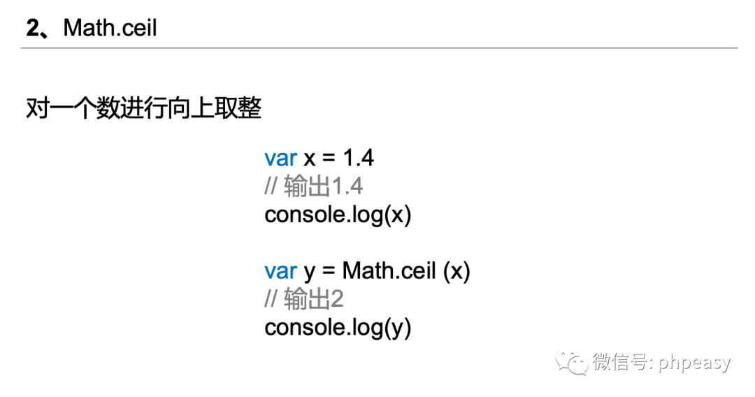 有时候,比如计算分页总次数。我们需要把一个数向上取整,可以使用Math.ceil函数,如果我们对1.4向上取整,则可以得到2