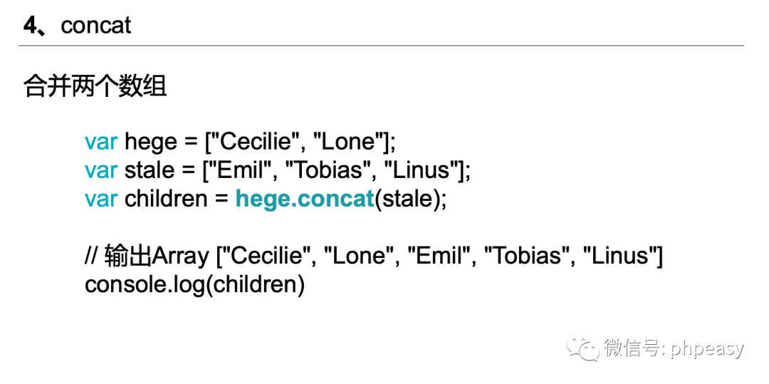 更多的时候,我们需要将两个数组合并,我们可以使用concat函数。