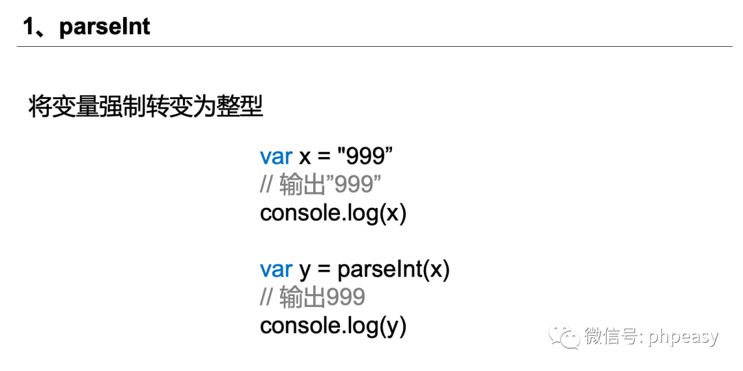 比如变量x等于字符串999,可以调用parseInt将其转换为整型。
