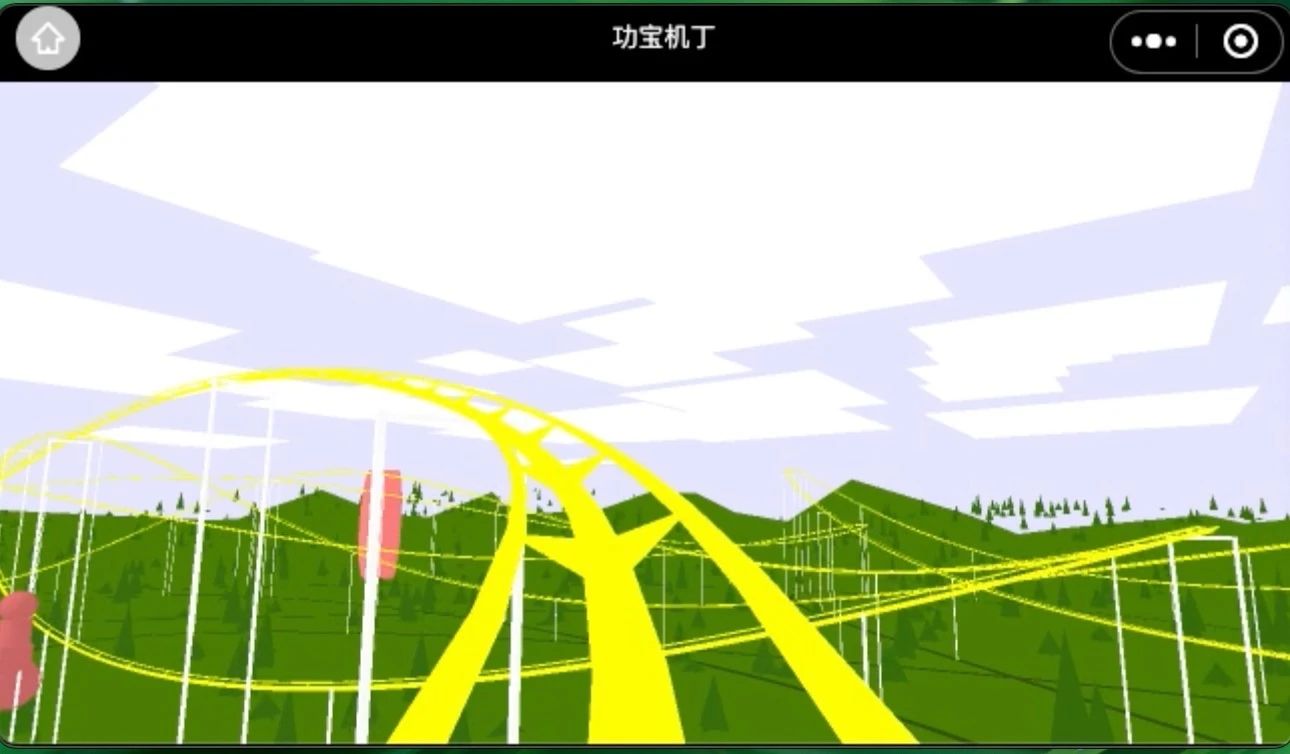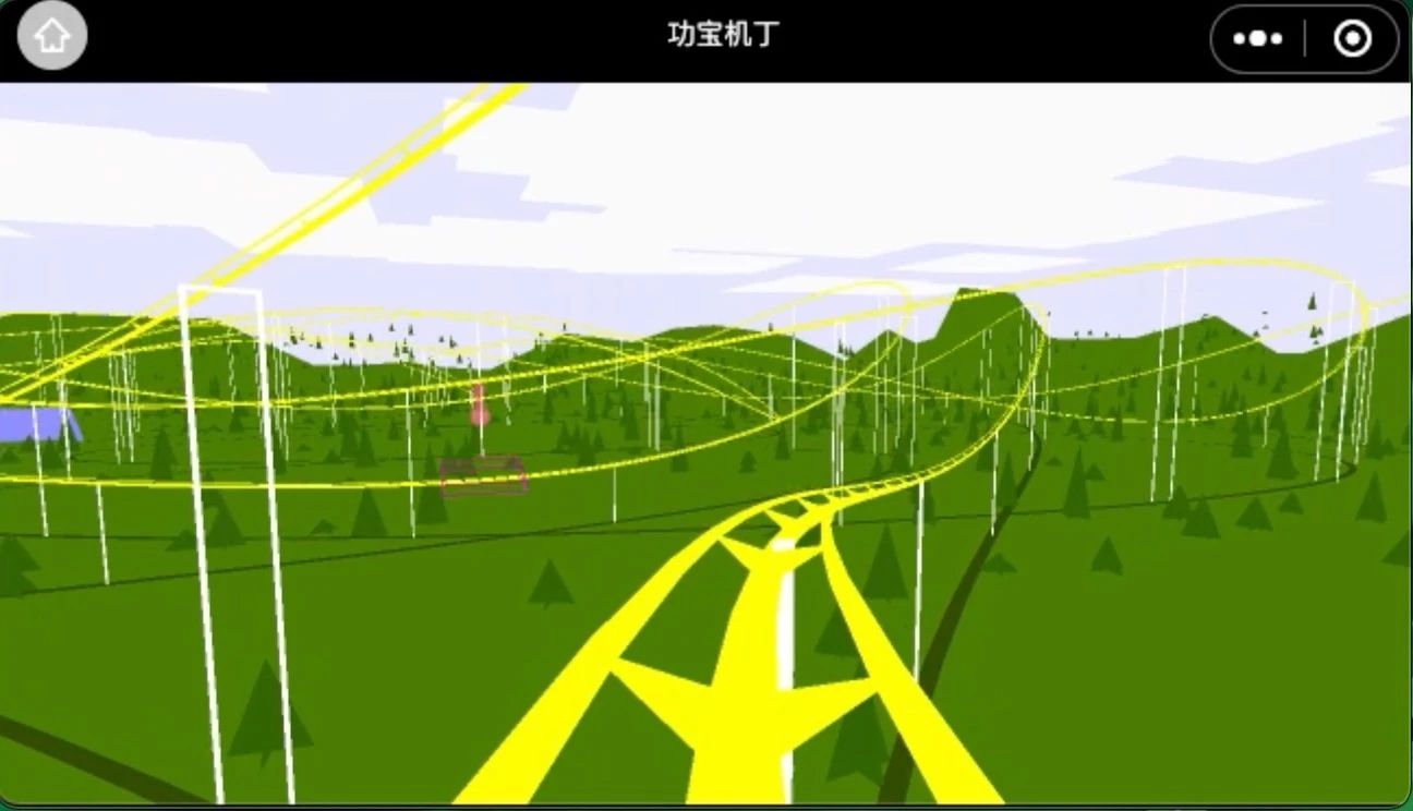 由于之前从未做过3D开发,所以把xr-frame和threejs同步尝试,以便比较选型。xr-frame上手非常快,保持了小程序一贯的MVC结构。但是当遇到一些需要定制的功能时,就有点困难。还好其架构的扩展性相当不错,基本上都能扩展。再加上glb加载做了优化,而对我们这是最关键的,所以就选择了继续使用xr-frame,把threejs和ammo作为工具类库,结合使用,相当不错。作为练手,做了个过山车,下面是效果图: