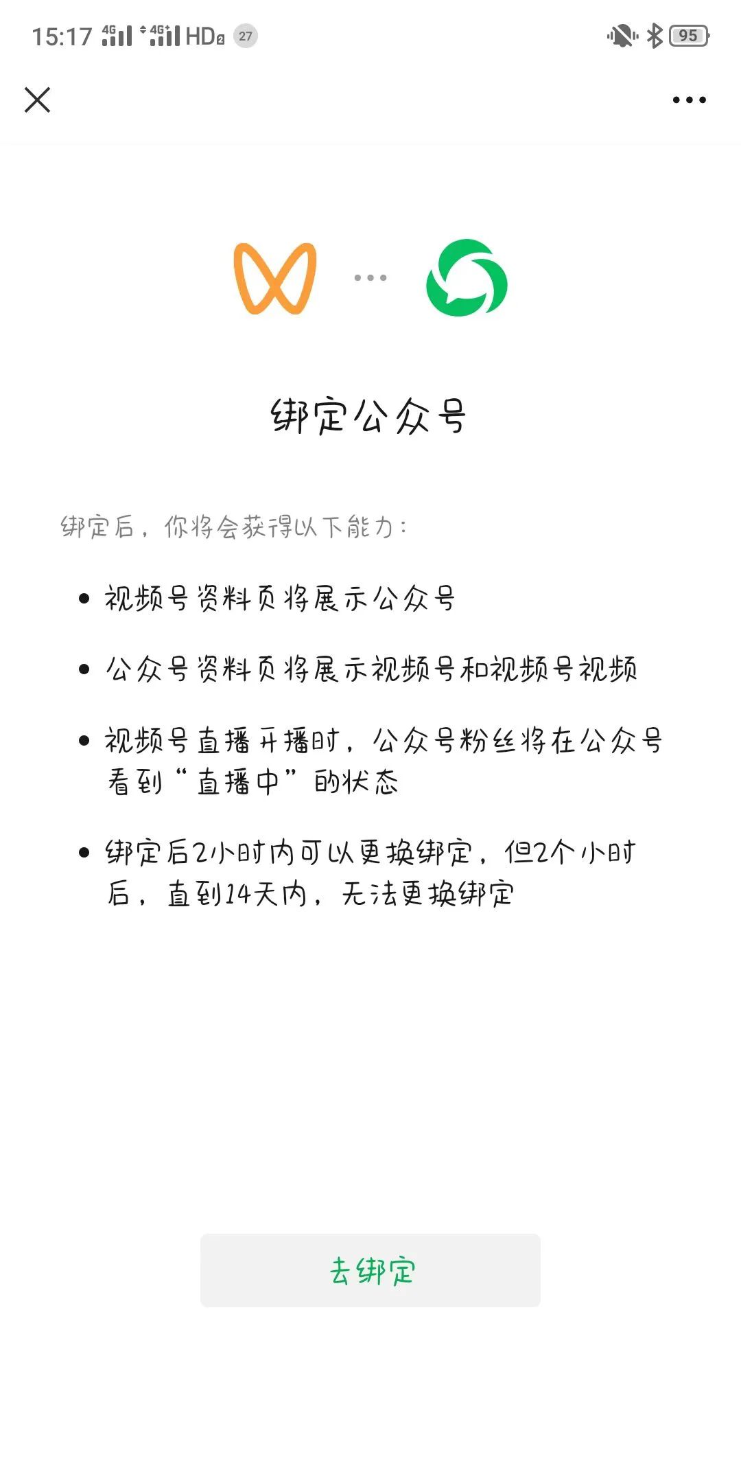 目前视频号与公众号绑定,绑定后2小时内可以更换绑定,但2个小时后,直到3个月内,无法更换绑定。