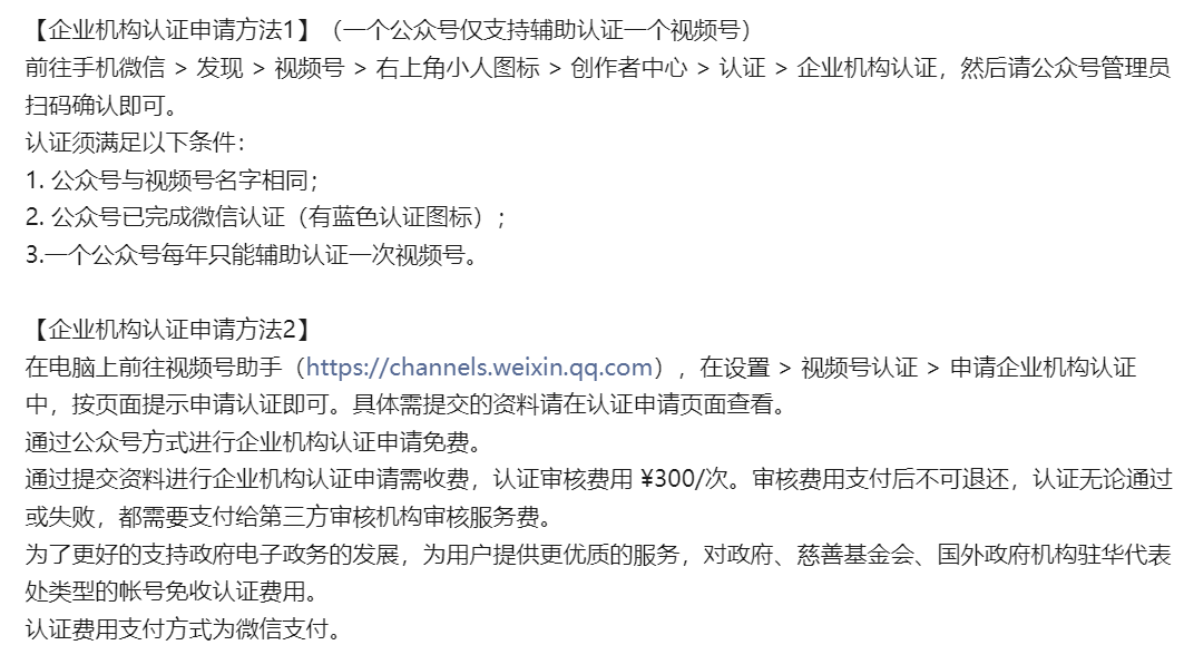 公众号认证已付费,视频号注册了,现在用企业机构认证,显示只能在PC端进行,完成认证资料后还需要继续付费,请问下是为什么?