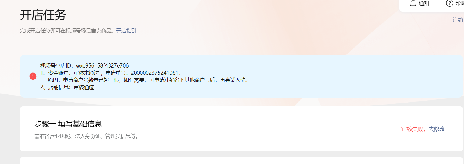 请问下大家 我名下没有申请过商户号的 营业执照也是3月份新申请的 为什么不通过的原因会是商户号超限,一个多月了还没搞定这个事 有没有好心人帮忙解决一下