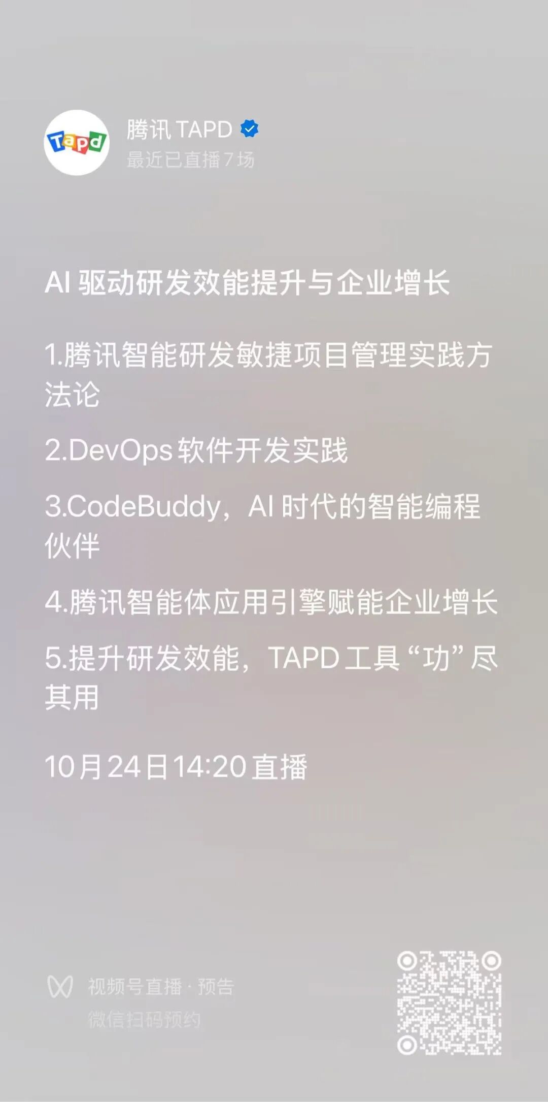 立即扫码报名,与腾讯技术专家共探研发新范式,打造属于企业的智能研发体系!席位有限,速来抢占!👇🏻👇🏻👇🏻👇🏻