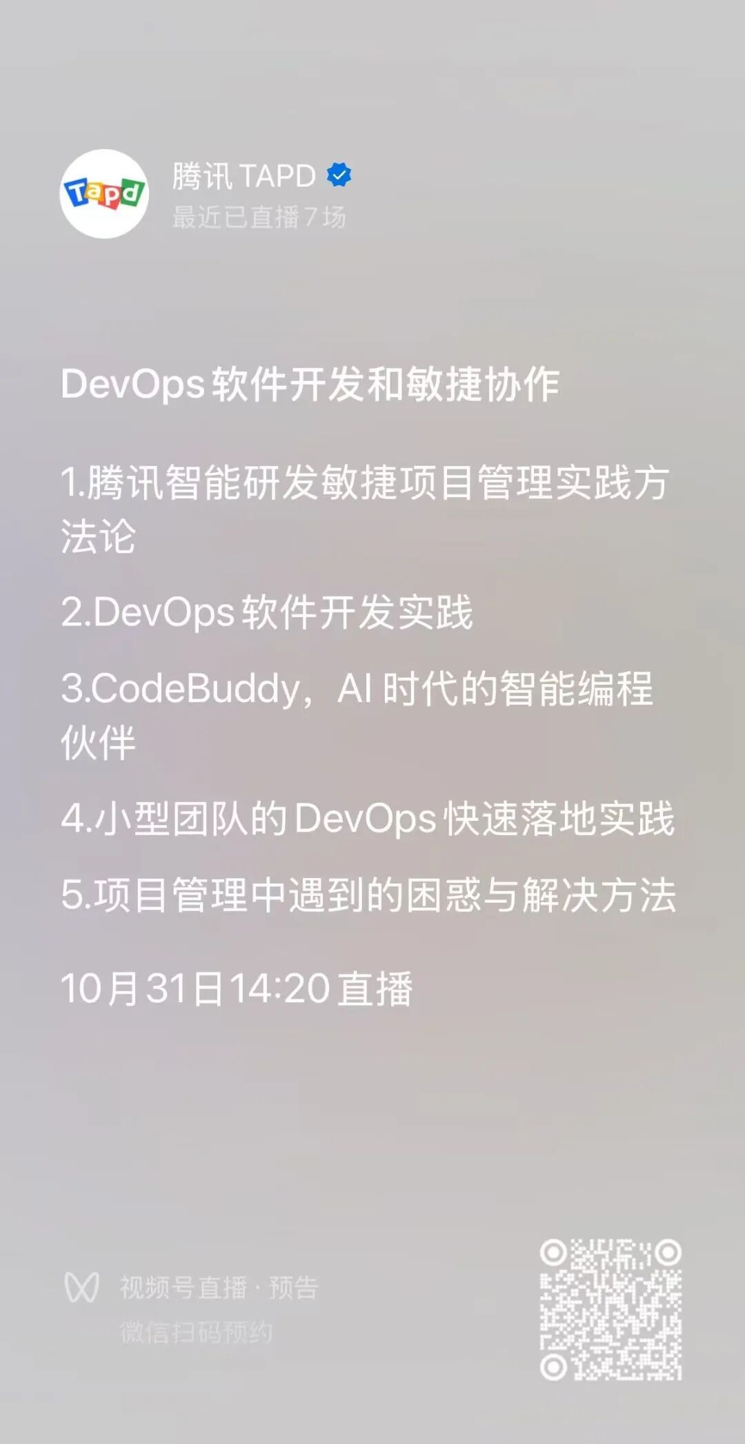 课程涵盖智能研发管理、DevOps实践、AI编程等七大核心模块,特邀业内专家分享实战经验。现场更有超值福利:获取万元资源包、加入精英交流群、赢取腾讯限定周边!