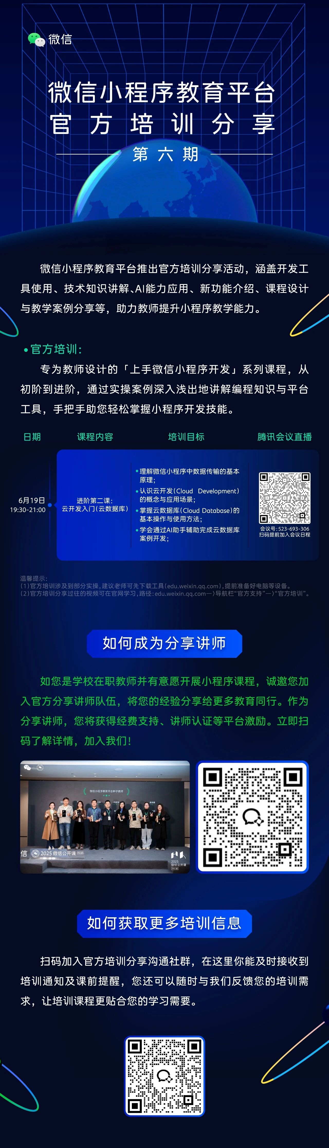 小程序教育平台官方培训分享第六期,开课啦!具体课程安排详情尽在下方海报~
