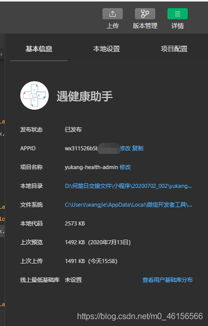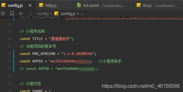 这里config.js文件里面的appID需要修改,右上角详情里面的AppID,也需要修改,是同一个APPID,这个APPID需要你找你们公司的后端或者产品经理或者组长要公司小程序如果已经注册了,要到appid后直接更换掉就可以,如果没有appid那就在创建项目的时候点击使用测试号,还需要让他们把你加到开发者里面去,这样就可以正常授权登录,进行开发了!