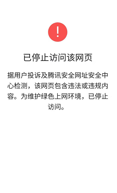 今天网站还没有上线之前,使用微信打开没有出现问题,但网站刚刚上线,使用微信浏览器访问打开显示停止访问网页。