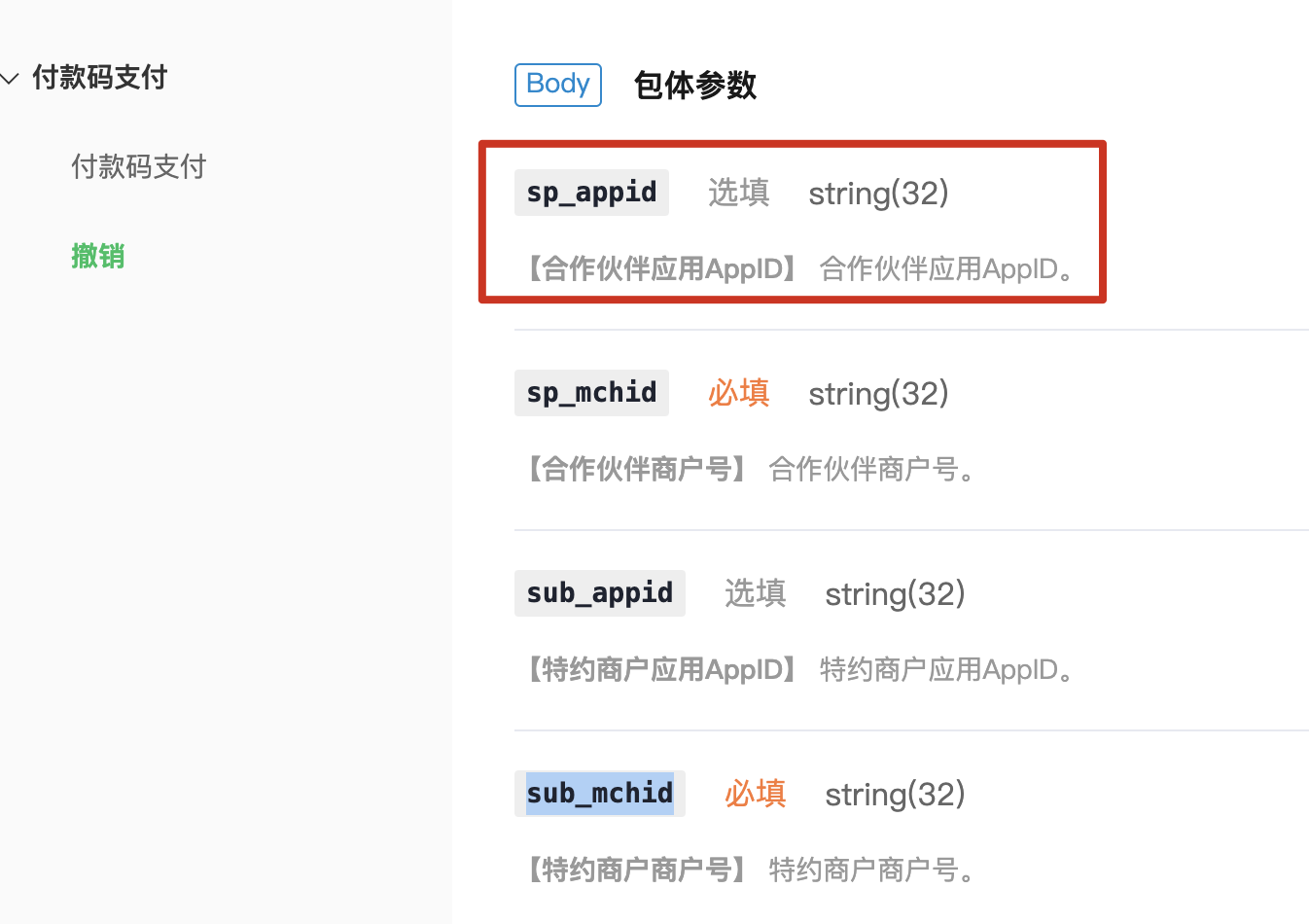 撤销接口和付款码接口sp_appid是否必填描述应该都有错误,经过测试是必填的,撤销如果不填,则返回系统错误SYSTEM_ERROR