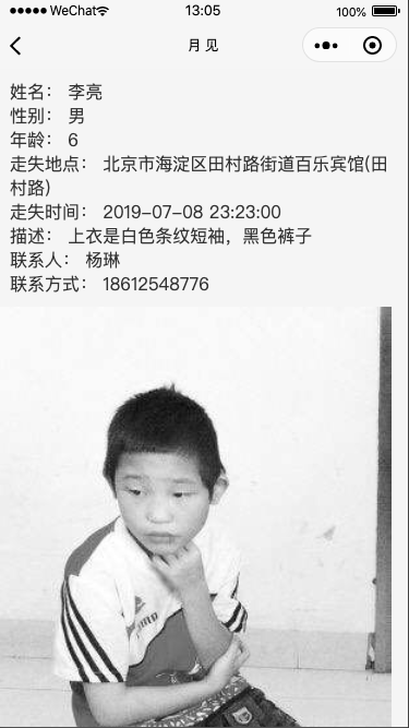 设想获取各大网站的走失人物信息展示于小程序上,提供给各大需要找寻已走失人的用户一个更加方便的平台。