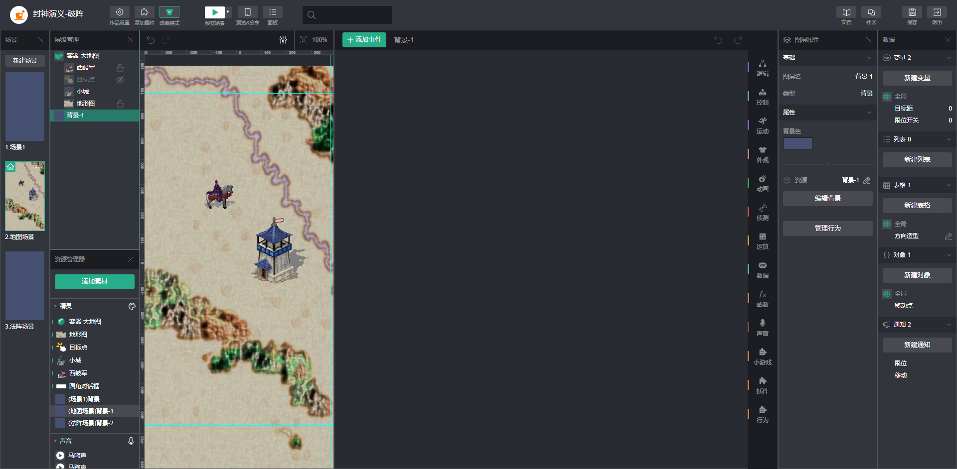 - 将【目标点】元素移到相对的移动点位上,通过【军队】与【目标点】得出移动方向值,通知目标点显示。