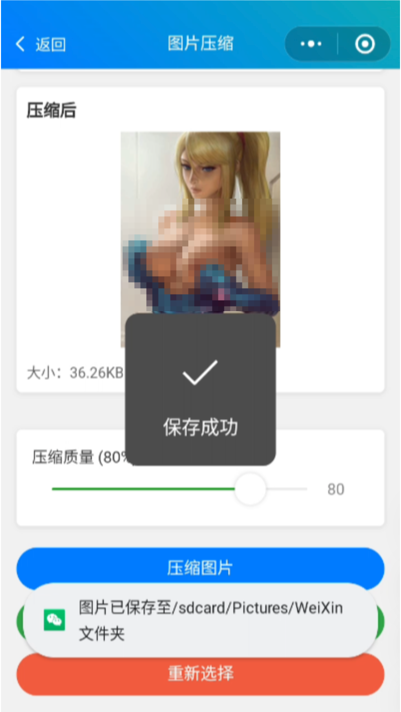 我搜索了很多带压缩的小程序,它们也都可以压缩色Q图片,感觉很冤枉。辛辛苦苦维护了这么久,说没就没了。