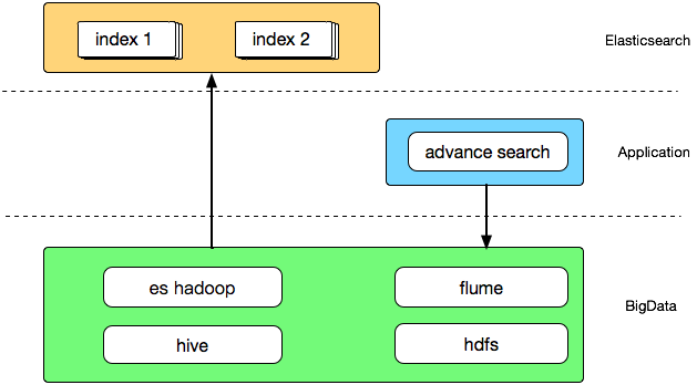 通过 flume 收集搜索日志存储到 hdfs 供后续分析,也可以在通过 hive 分析后导出作为搜索提示词,当然大数据为搜索业务提供的远不止于此,这里只是简单列举了几项功能。