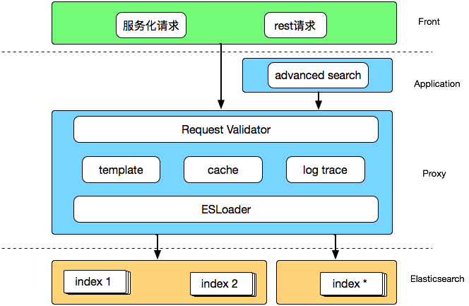 作为对外服务的出入口,proxy 除了通过 ESLoader 提供兼容不同版本 Elasticsearch 调用的标准化接口之外,也内嵌了请求校验、缓存、模板查询等功能模块。