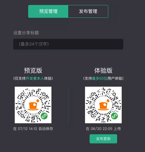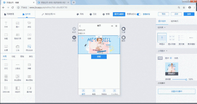 同时,我们可以看到,在这款可视化制作工具中,微信还提供了丰富的官方组件和个性化素材,并支持用户实时预览分享以及发布到微信公众平台。
