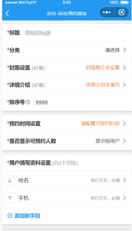 于是我将预约小程序页面内的功能模块抽象成自定义组件,以便以后再不同的小程序页面中重复使用;