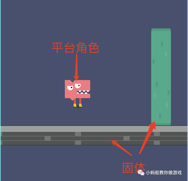 举个例子,现在你要做一个人物角色,可以站在地上,向前移动时前方有一个无法穿过的墙。那就可以这样设置: