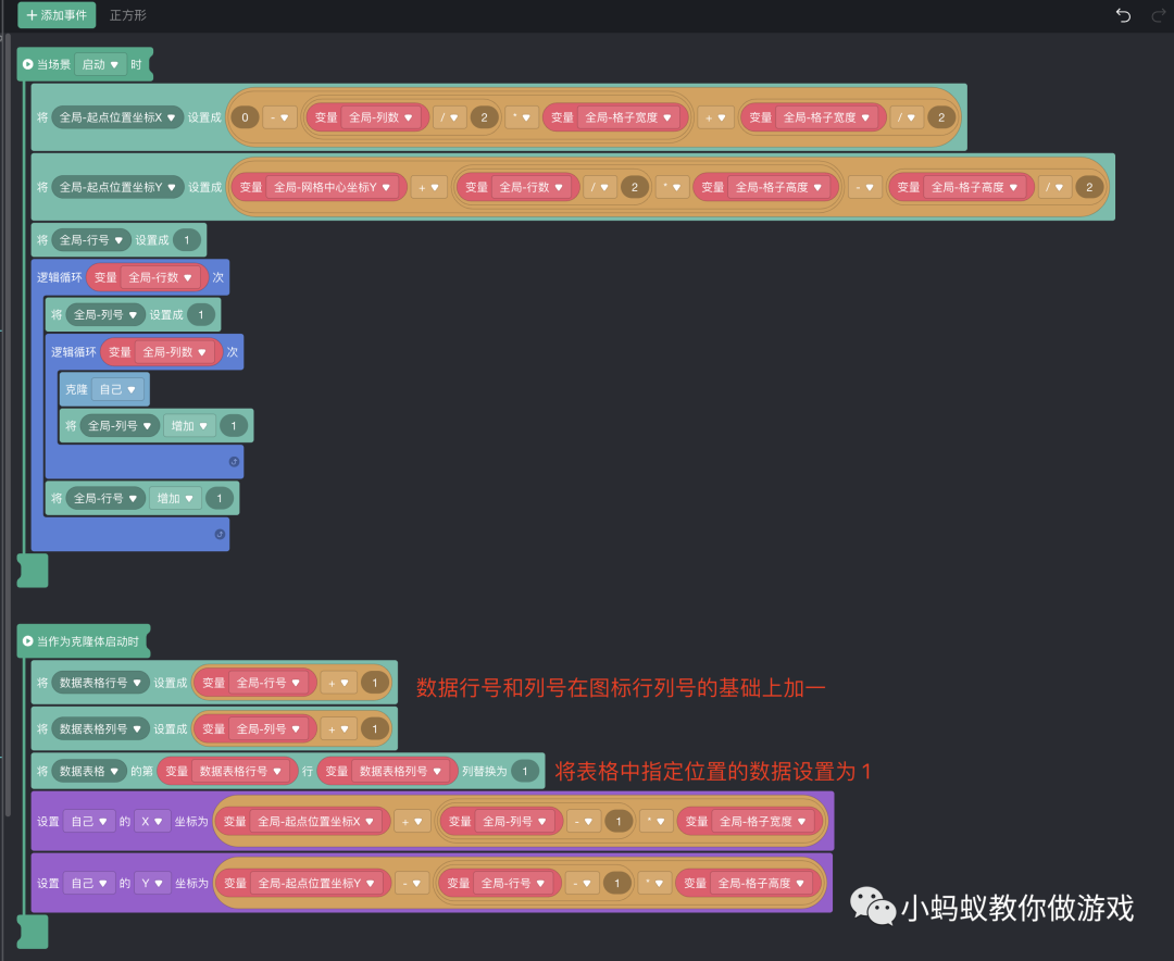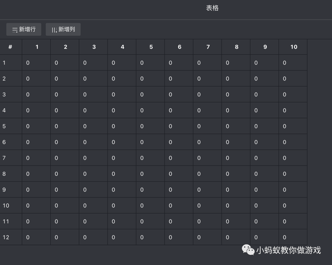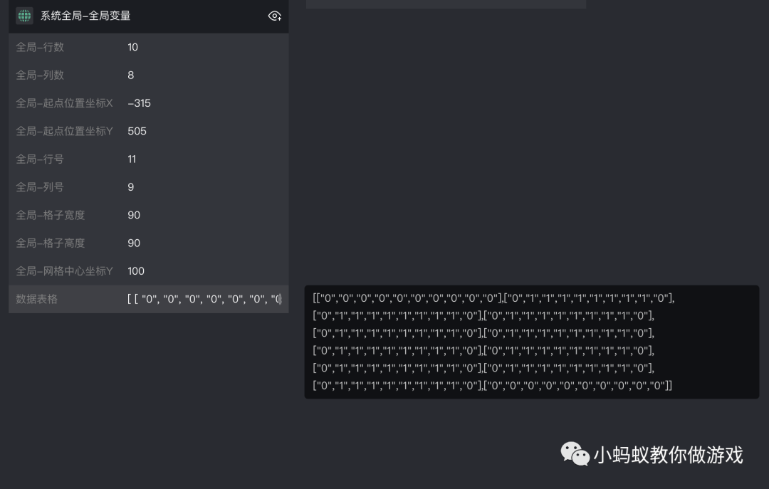 接下来我们在游戏中增加数据表格,并且在初始化的时候,根据图标的位置设置表格中对应位置的数据。